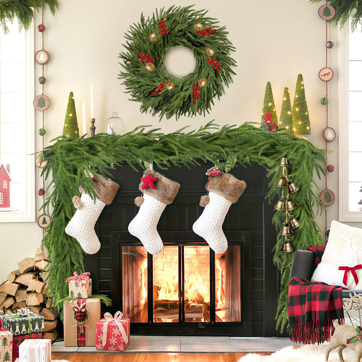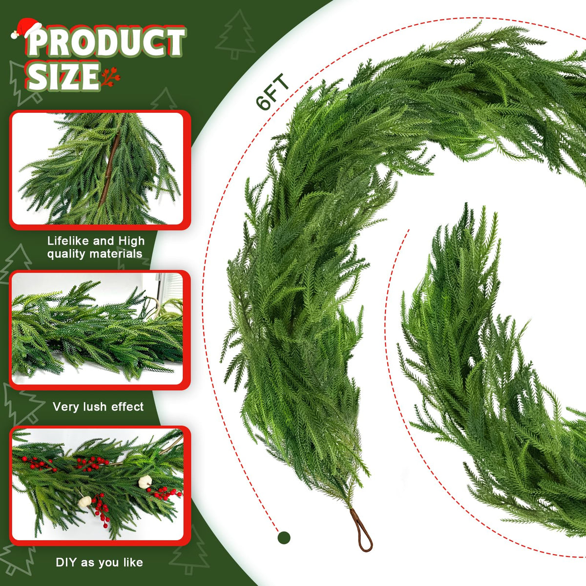 9.8Ft Christmas Norfolk Pine Garland with Berry and Pines,Real Touch Cedar Garland,Pine Garlands for Mantle, Table,Stair Handrai