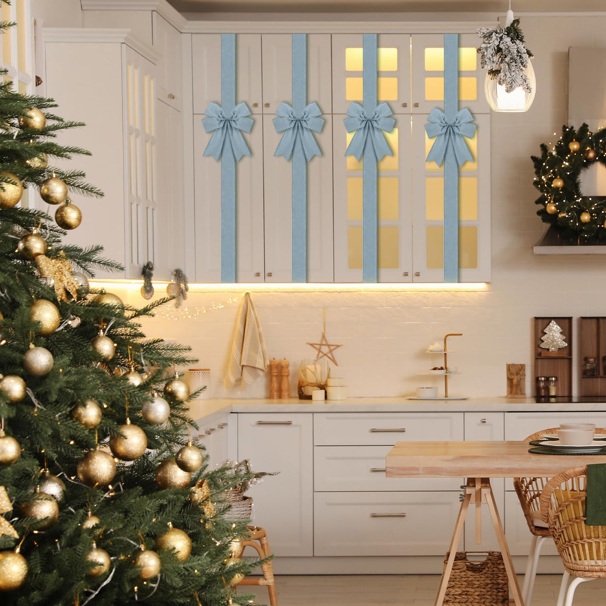 9 Pcs Christmas Velvet Cabinet Door Bows and Ribbons Large Christmas Door Cabinet Bows Xmas Cabinets Furniture Kitchen Party Dec