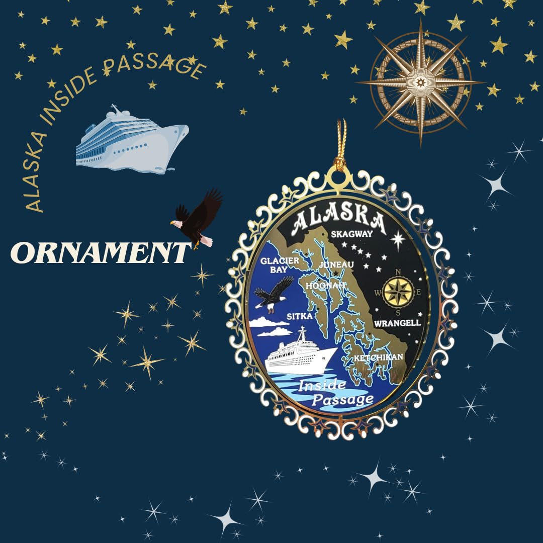 ALASKA Inside Passage ORNAMENT Brass Christmas Souvenir Travel Gift