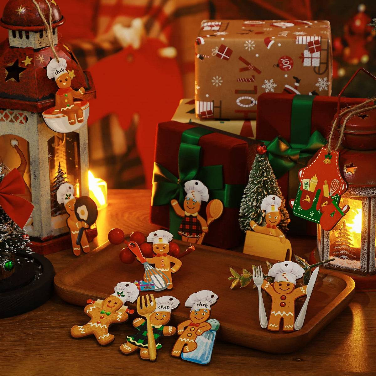 Amyhill 30 Pieces Christmas Baking Tool Ornament Hanging Baking Gingerbread Decorations Farmhouse Chef Bakers Apron Ornament Woo