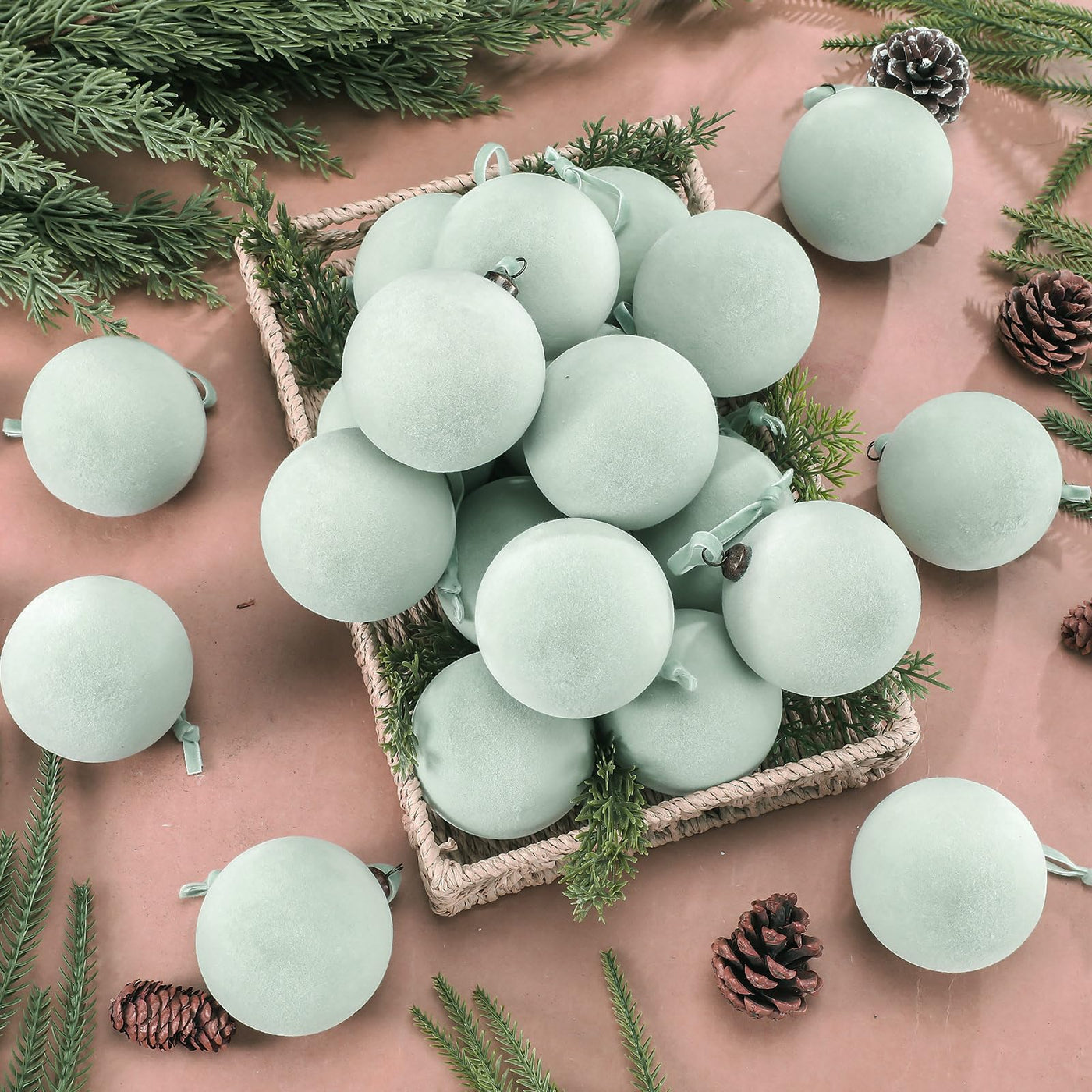 Arrowbash 32 Pcs Sage Green Velvet Christmas Balls Bulk - 3.15 Inch Flocked Christmas Tree Ball Ornaments Xmas Shatterproof Hang