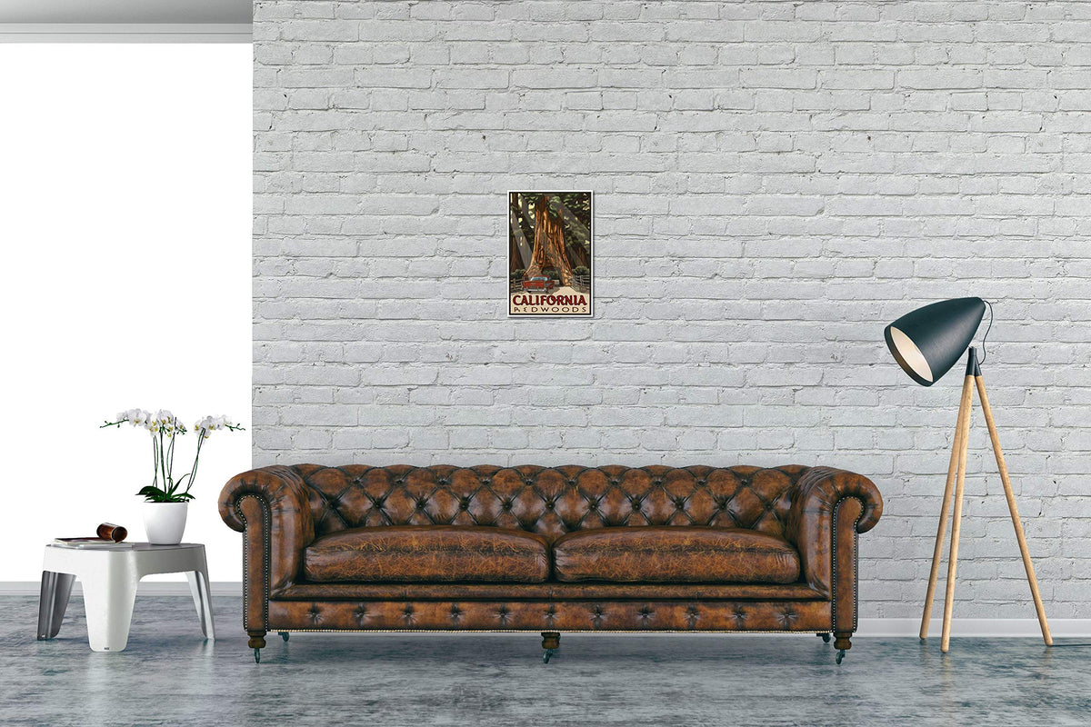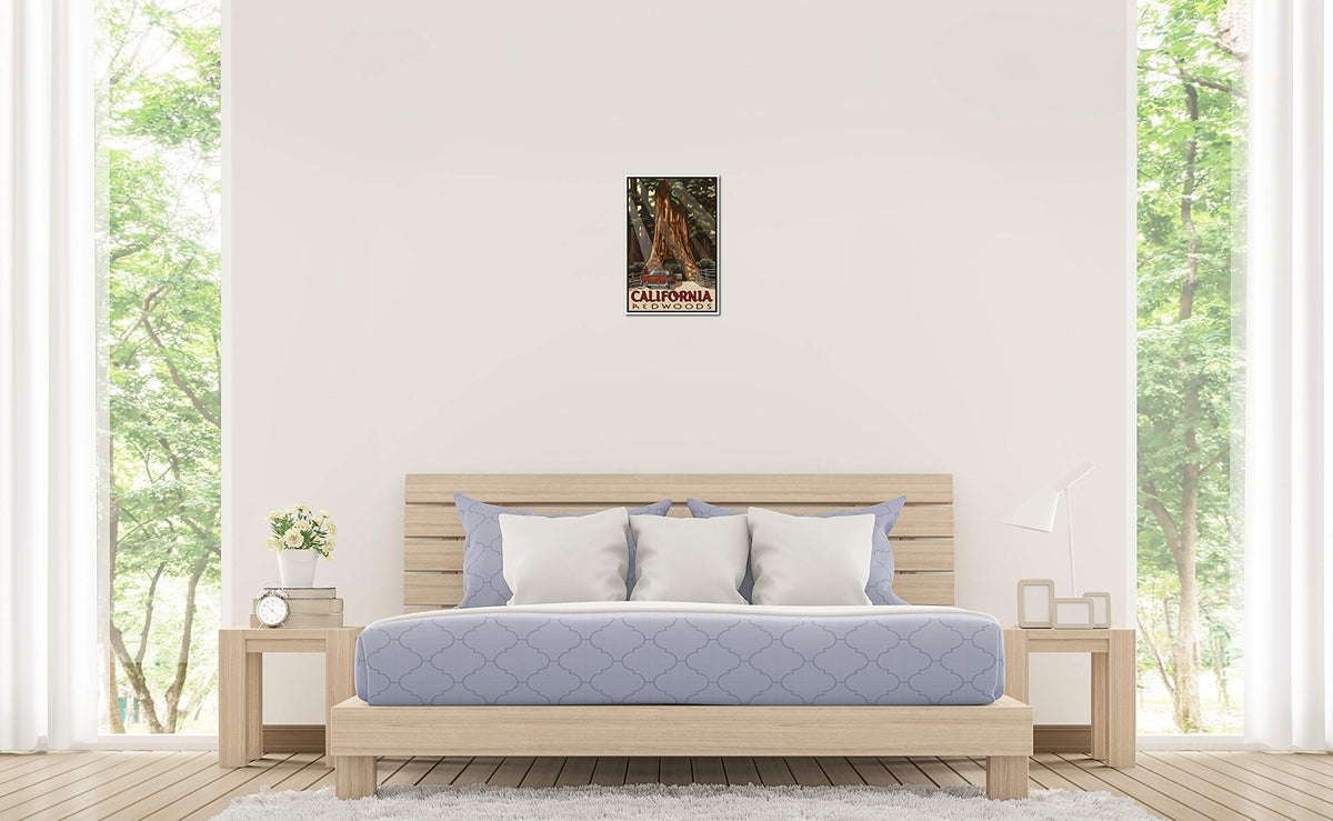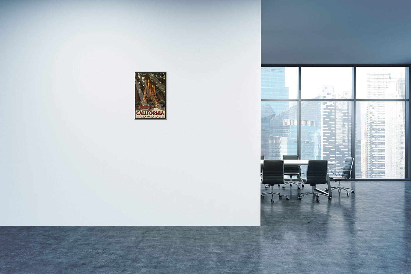 Art Of Place California Redwoods Car Thru Tree Giclee Art Print Poster From Travel Artwork By Artist Paul A. Lanquist 12'' X 18'