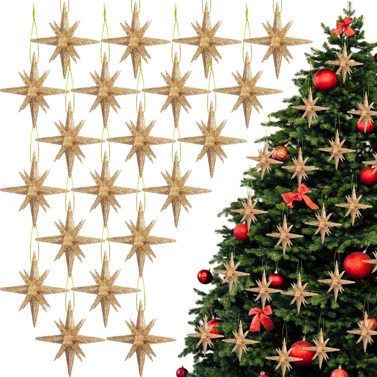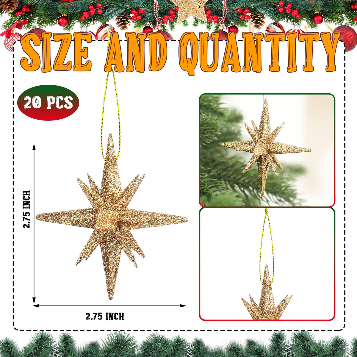 Beeveer 20 Pcs Christmas Bethlehem Star Ornament - 2.75 Inch Glitter Star of Christmas Tree Bethlehem Ornament for Xmas Holiday