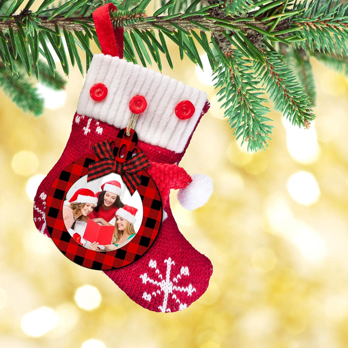 Blulu 24 Pcs Christmas Photo Ornament 2025 Baby First Christmas Pictures Frame Bulk Hanging Picture Frames Wooden for Xmas Tree