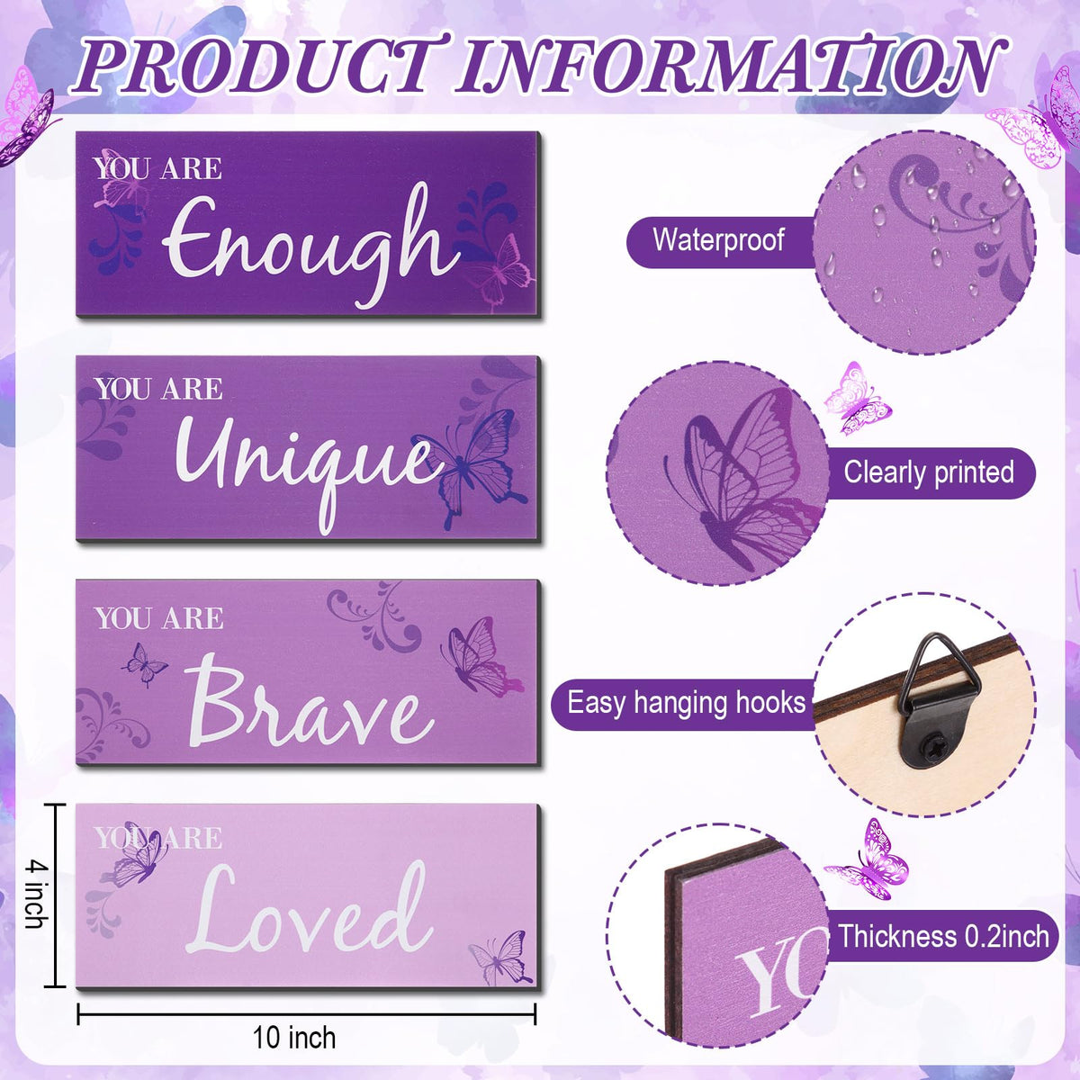 Blulu 4 Pcs Butterfly Inspirational Quotes Wooden Wall Decor and 3D Butterfly Wall Decor Girls Room Inspirational Gift for Teen