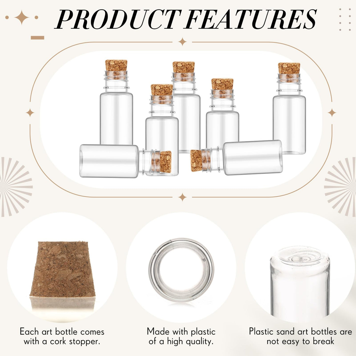 Bokon 100 Packs Mini Plastic Bottles with Corks Stoppers Eye Screws Funnels Small Potion Bottles Tiny Clear Sand Art Jar Wishing