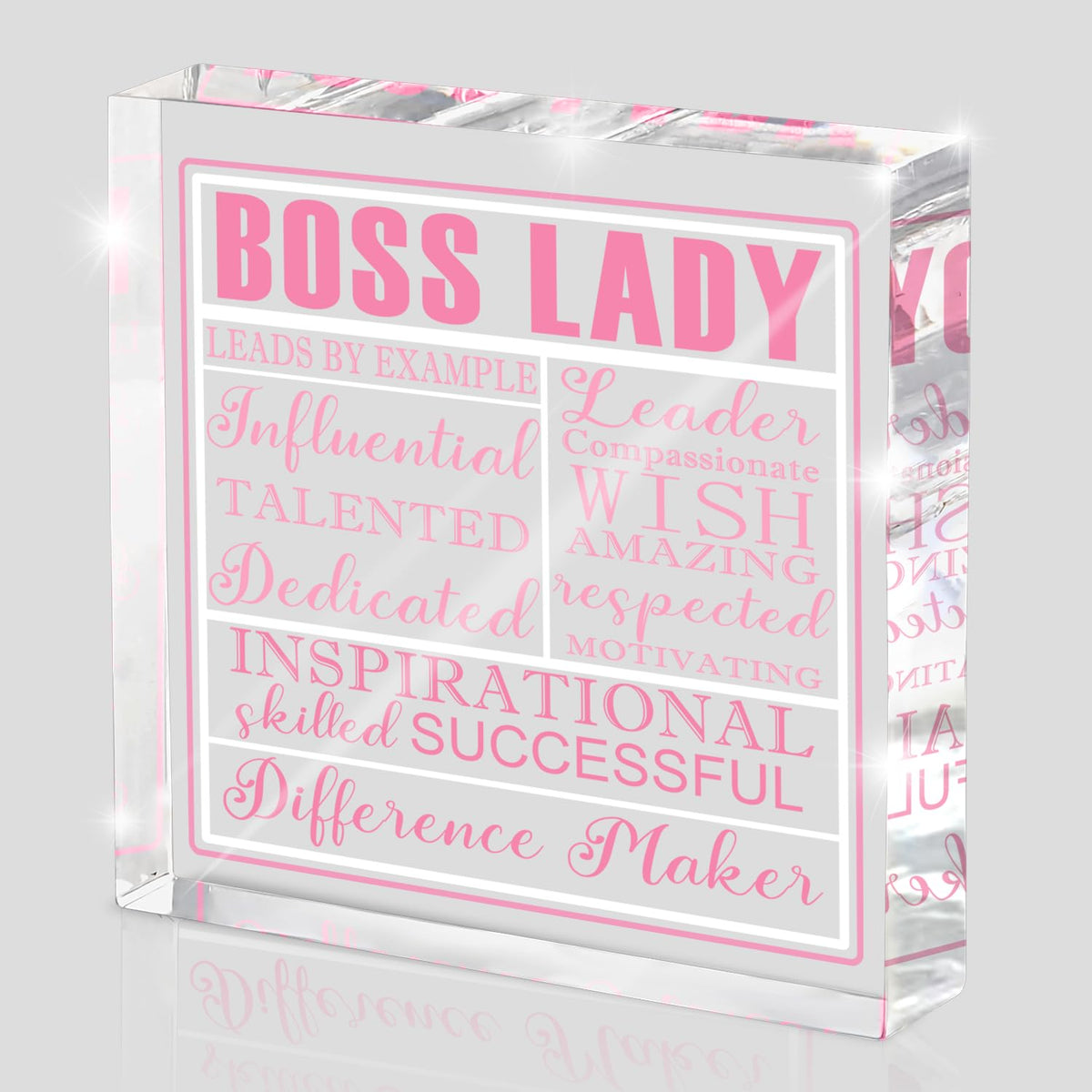 Boss Lady Gift For Women, Pink Acrylic Decorative Plaque Sign, Inspirational Quotes Office Gift For Leaders, Pink Acrylic Boss L