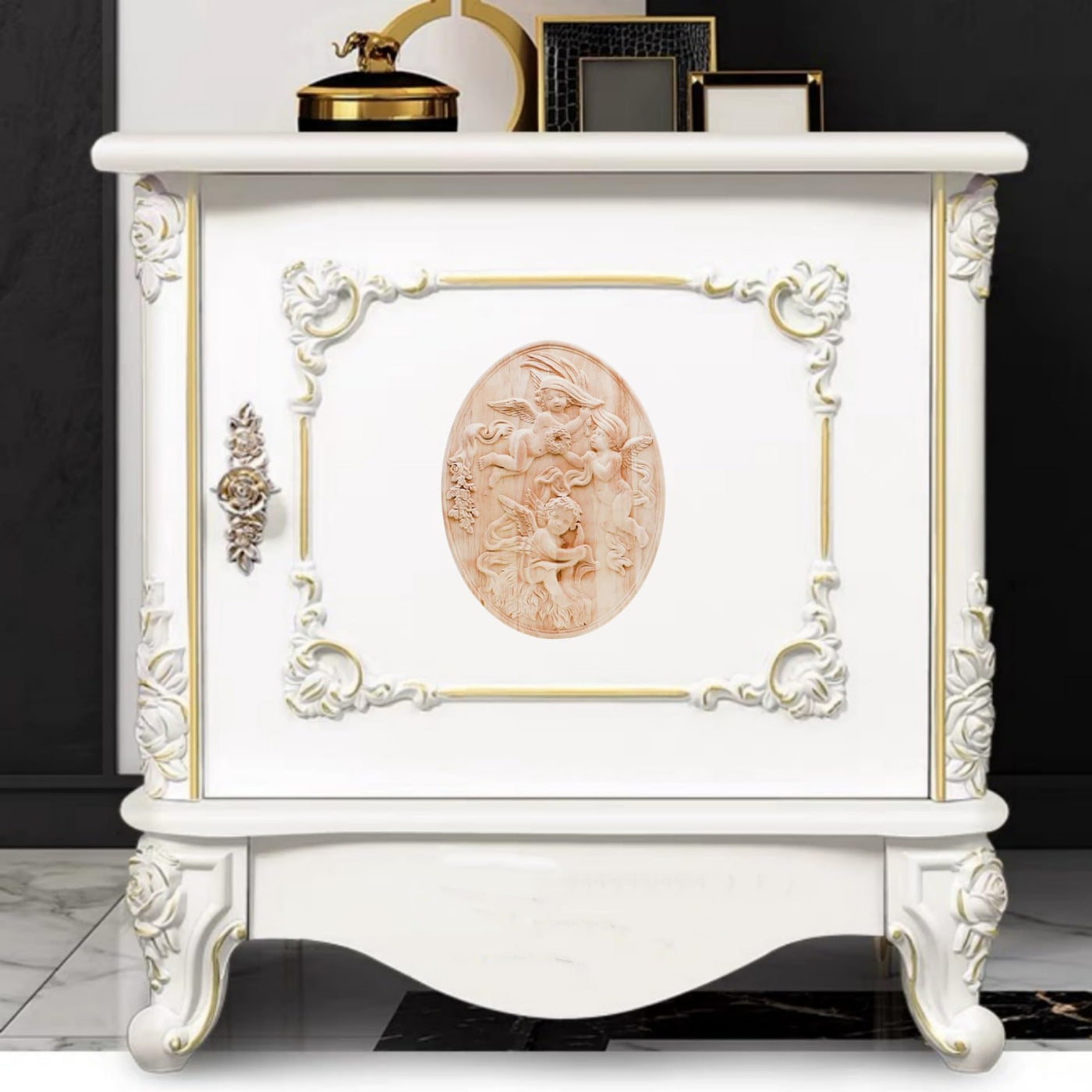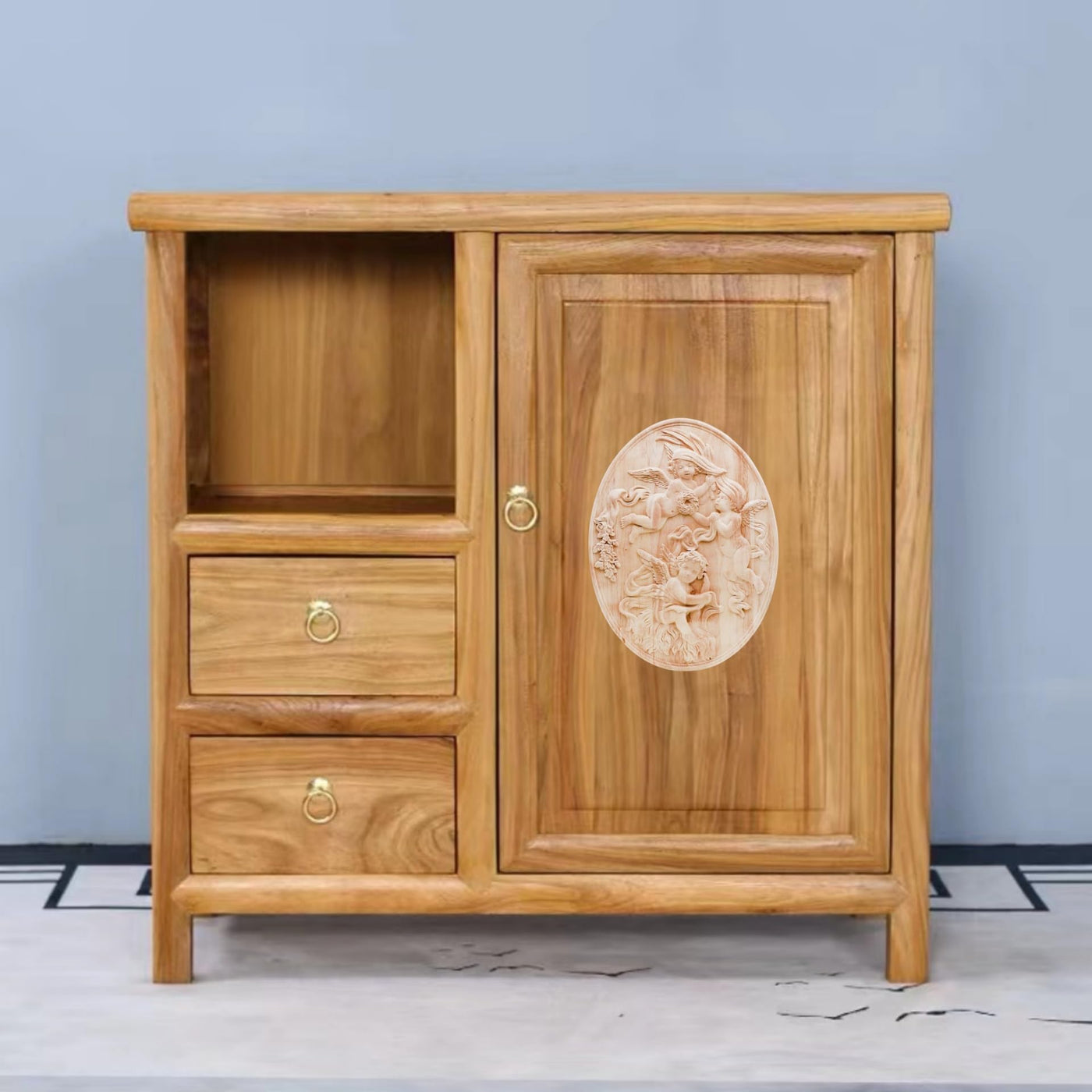 BSYMDH Angel Pattern Wood Carving Decal Unpainted Wood Onlay Appliques Wood Carved Furniture DIY Appliques Onlays for Wall Door