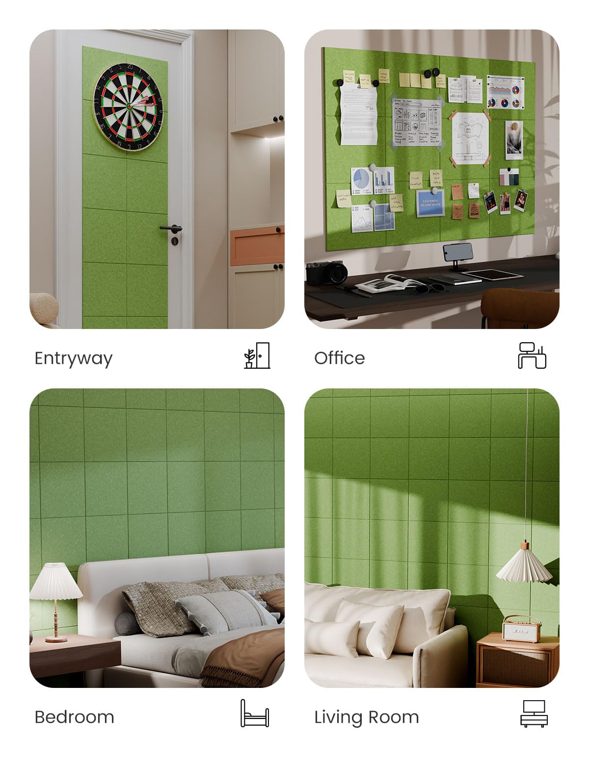 Bumusty Large Cork Board 47x35 Alternative - 12 Pack Felt Wall Tiles with 70 Safe Removable Adhesive Tabs, 30 Pushpins, Cork Boards for Walls Pin Board Tack Board Cork Board (Grass Green)