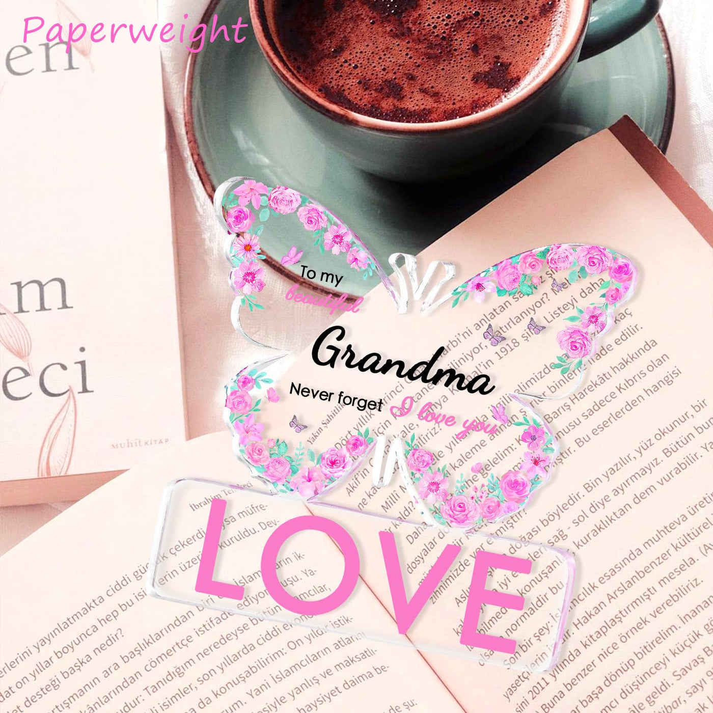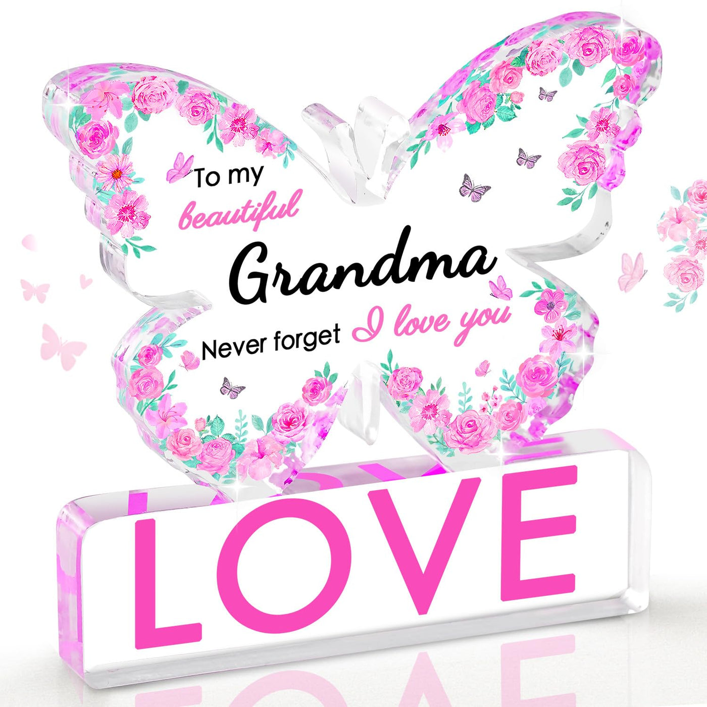 Butterfly Acrylic Plaque Grandma Gifts - Gigi Gifts for Grandma, Birthday Gifts from Kids, Memorial Keepsake Self-Standing Home