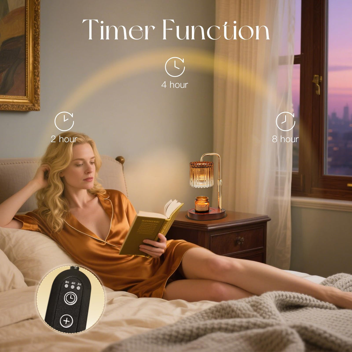 Candeldo Candle Warmer Lamp with Timer: Amber Candle Warming Lamp with 2 Bulbs Height Adjustable Wax Melt Dimmable Bedroom Decor