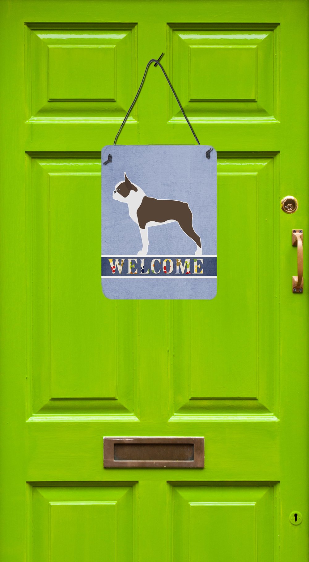 Caroline's Treasures BB5548DS1216 Boston Terrier Welcome Wall or Door Hanging Prints Aluminum Metal Sign Kitchen Wall Bar Bathro