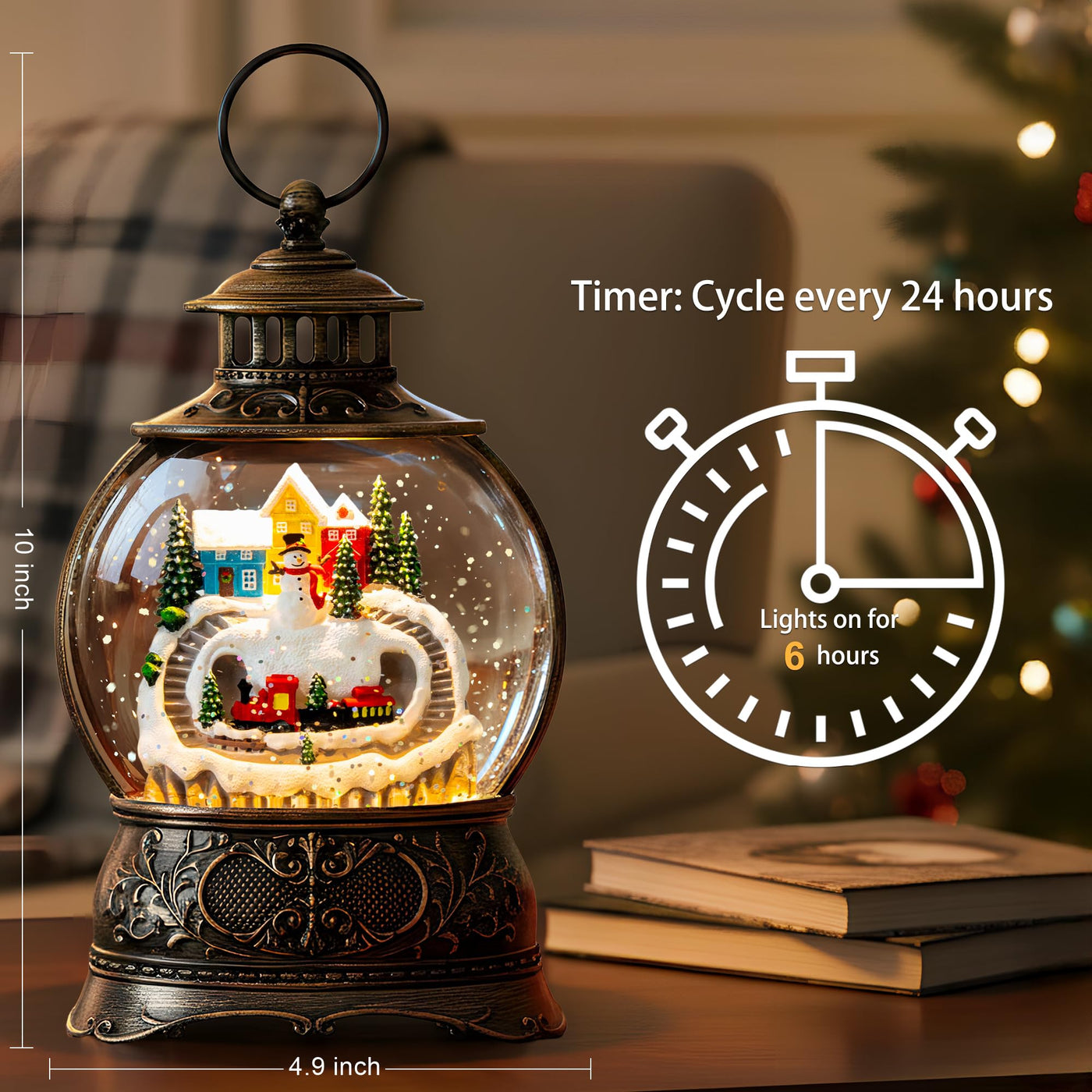 Christmas Village Snow Globe Water Lantern with Snowman and Train Scene Battery Operated or USB Powered Musical Lighted Holiday
