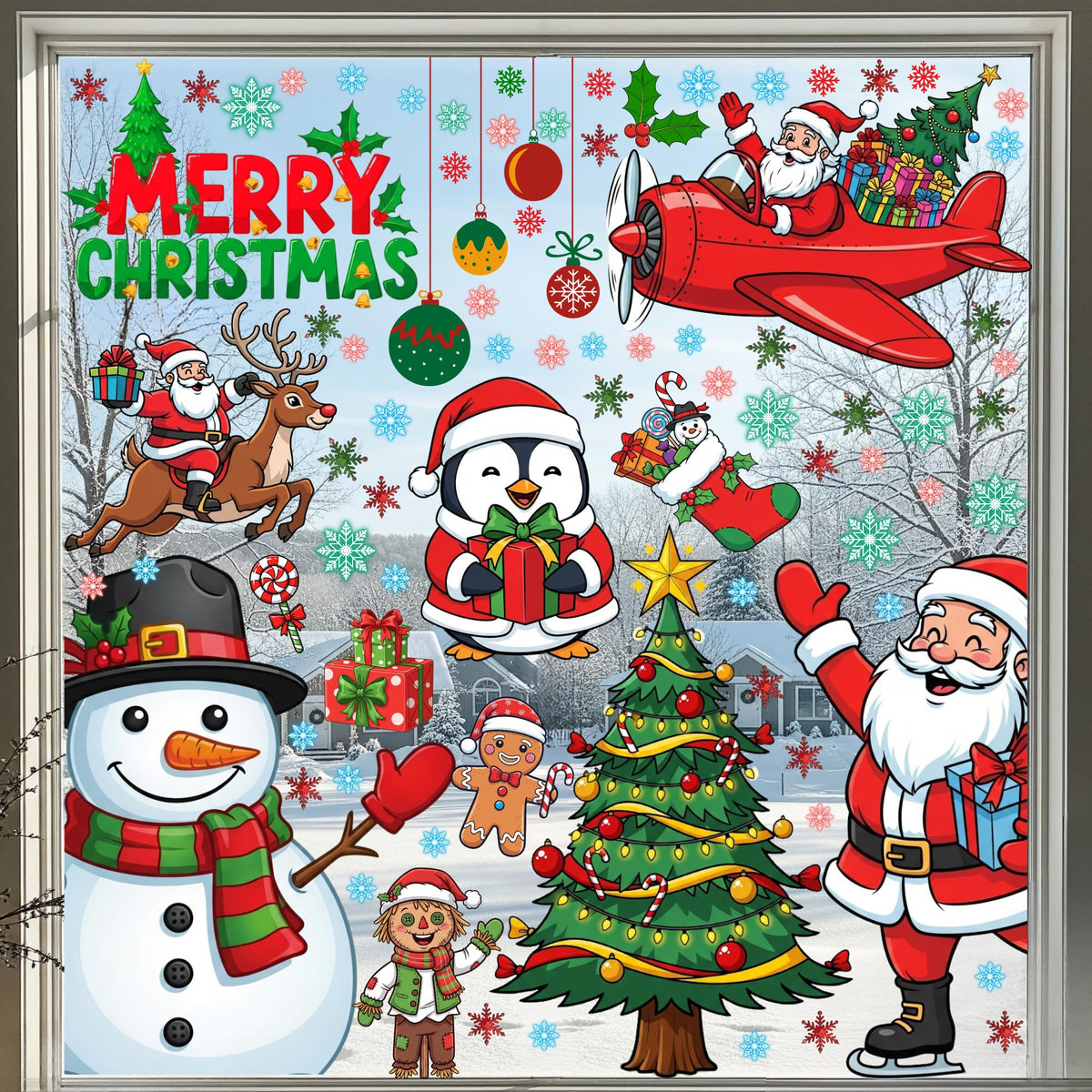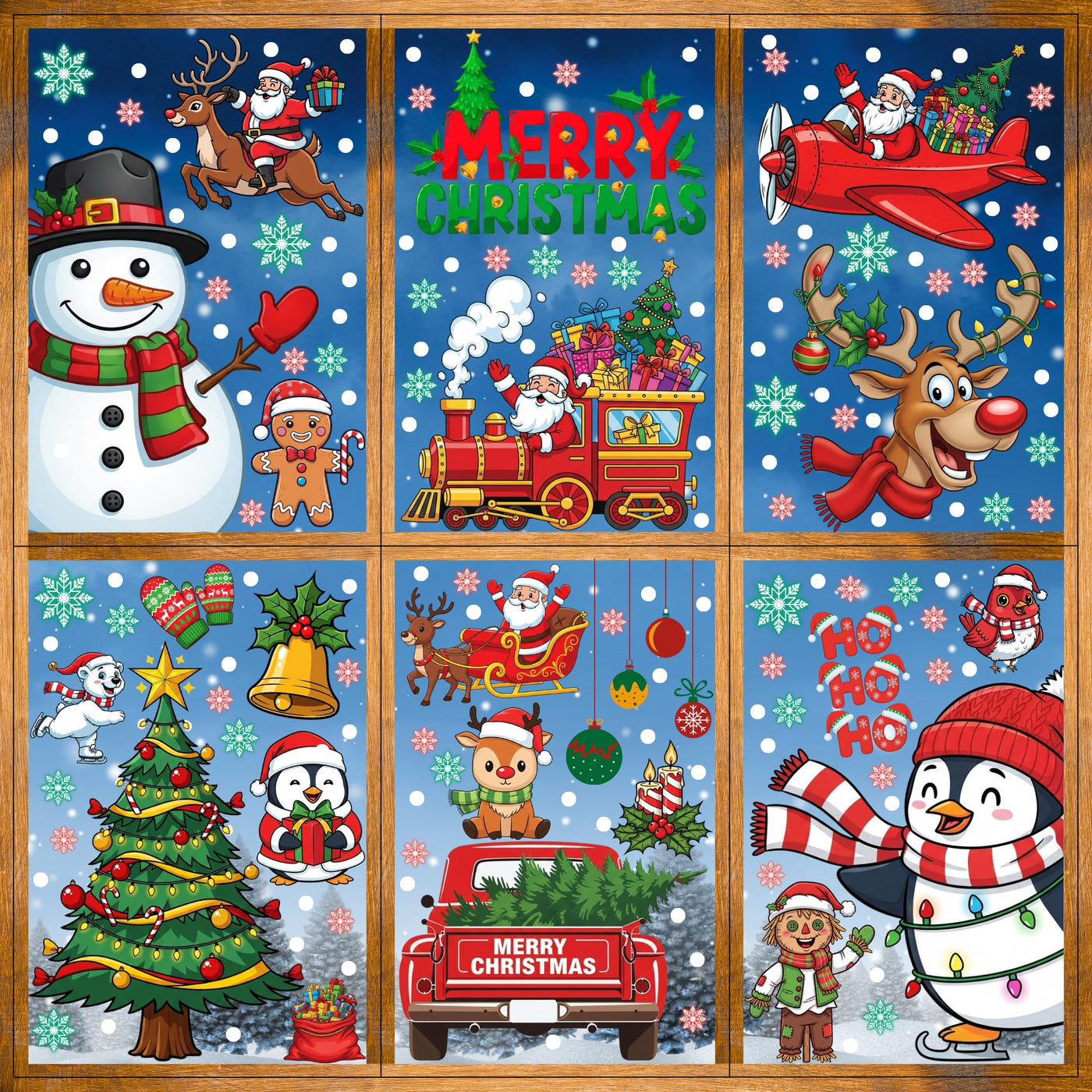 Christmas Window Clings Stickers | 350Pcs Christmas Clings Xmas Window Decals Decorations Indoor Outdoor Glass Snowflake Santa C