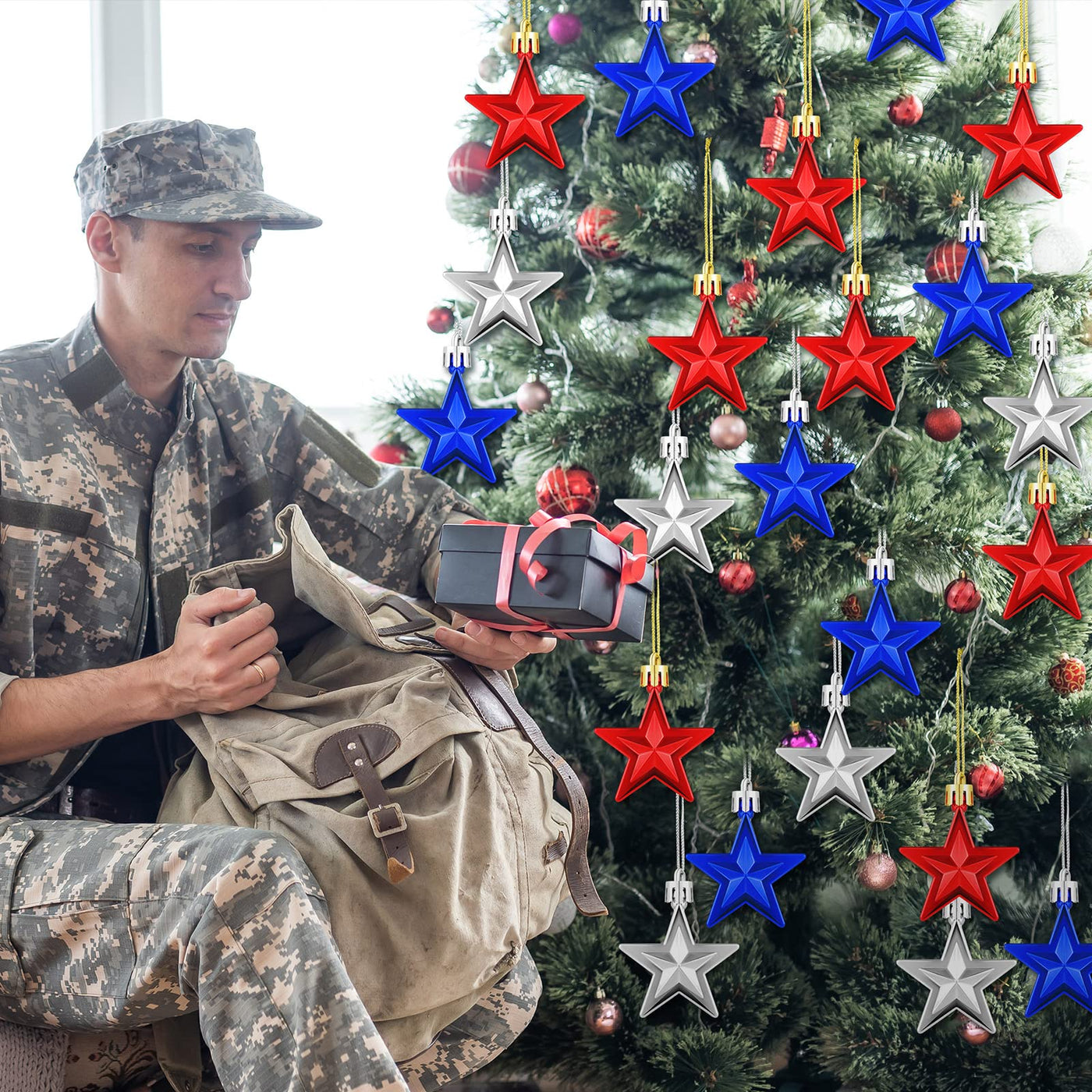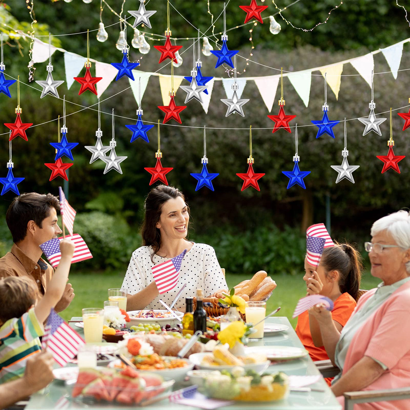 Cindeer 37 Pcs Patriotic Decorations Large America Flag Bow for Wreath 36 Pcs Patriotic Red White Blue Stars Ornaments Holiday T