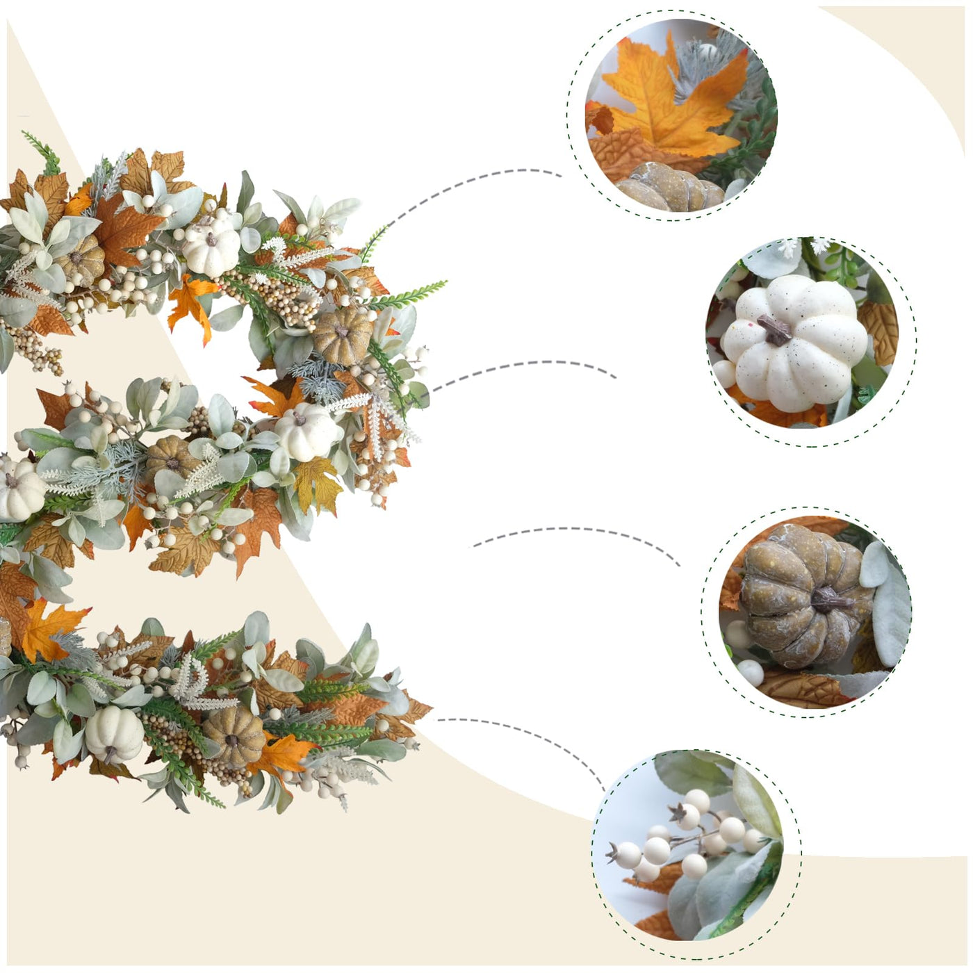 Thanksgiving fall Tabletop Centerpiece Decor. Lifelike autumn decorations, Thanksgiving table decoration selection of representative autumn elements, mini pumpkins, berries, maple leaves, sunflowers, gorgeous colors make the home full of autumn atmosphere.