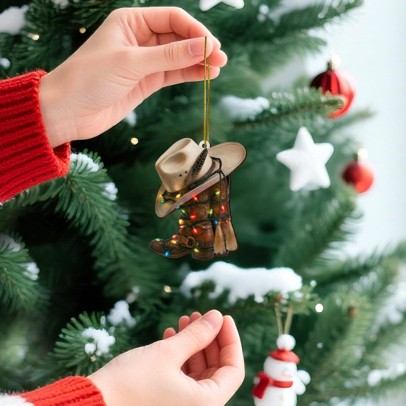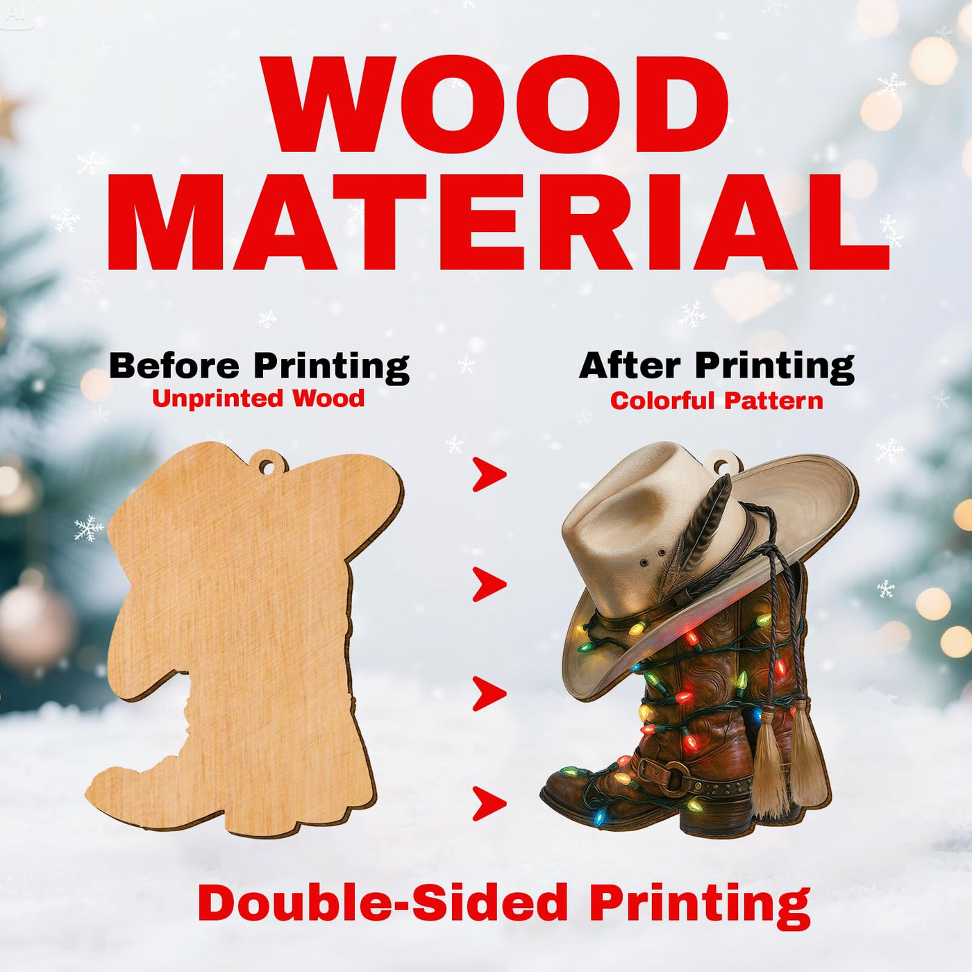 Cowboy Boot & Hat Christmas Ornament 2025 - Double-Sided UV Printed Poplar Wood Western Holiday Decor