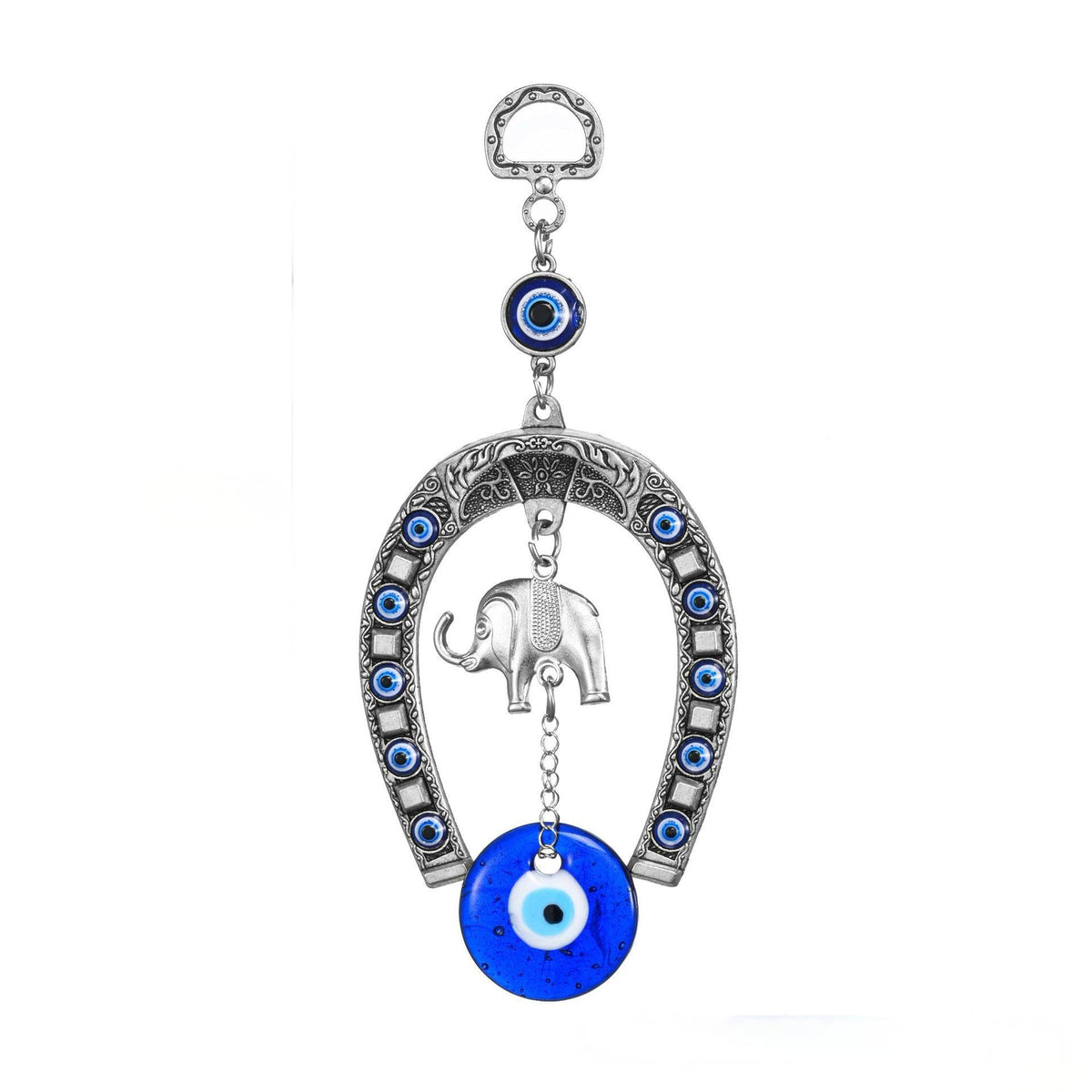 Creative Handmade Evil Eye Fatima's Holy Hand and Horseshoe Evil Eye Talisman Pendant Decoration, Good Luck Charm, Office, Car D