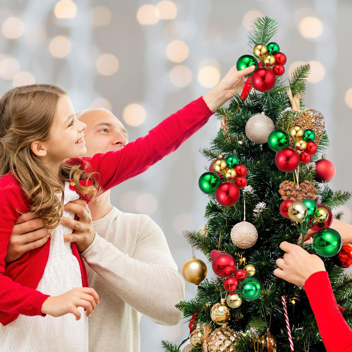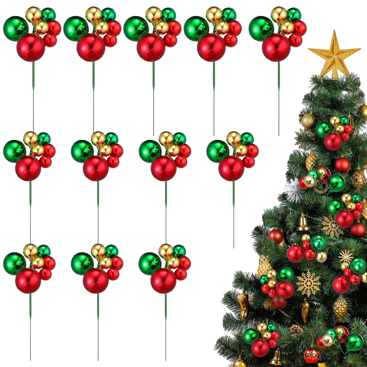 Daifunli 12 Pcs Red Green and Gold Christmas Tree Picks 7.87 Inch Christmas Balls Ornaments Xmas Decorations for Xmas Tree Toppe