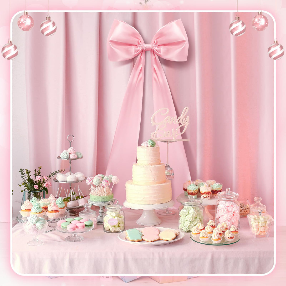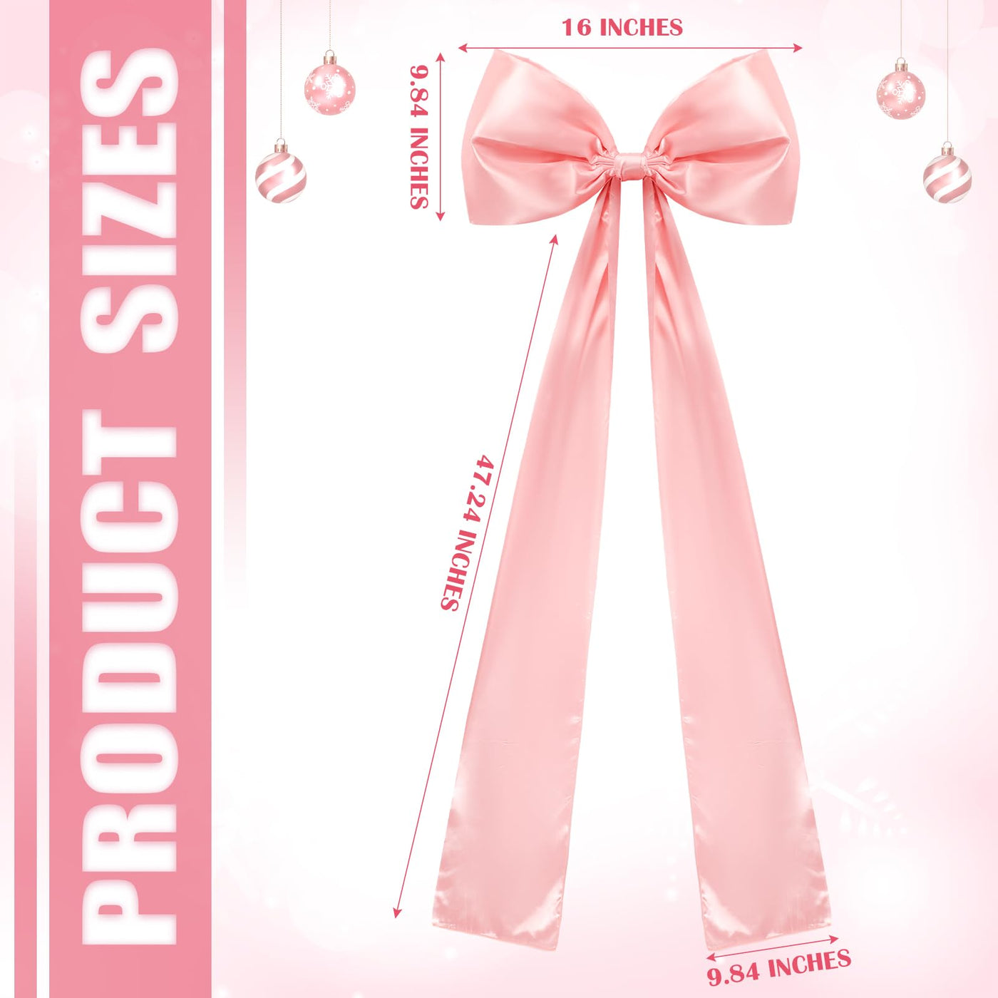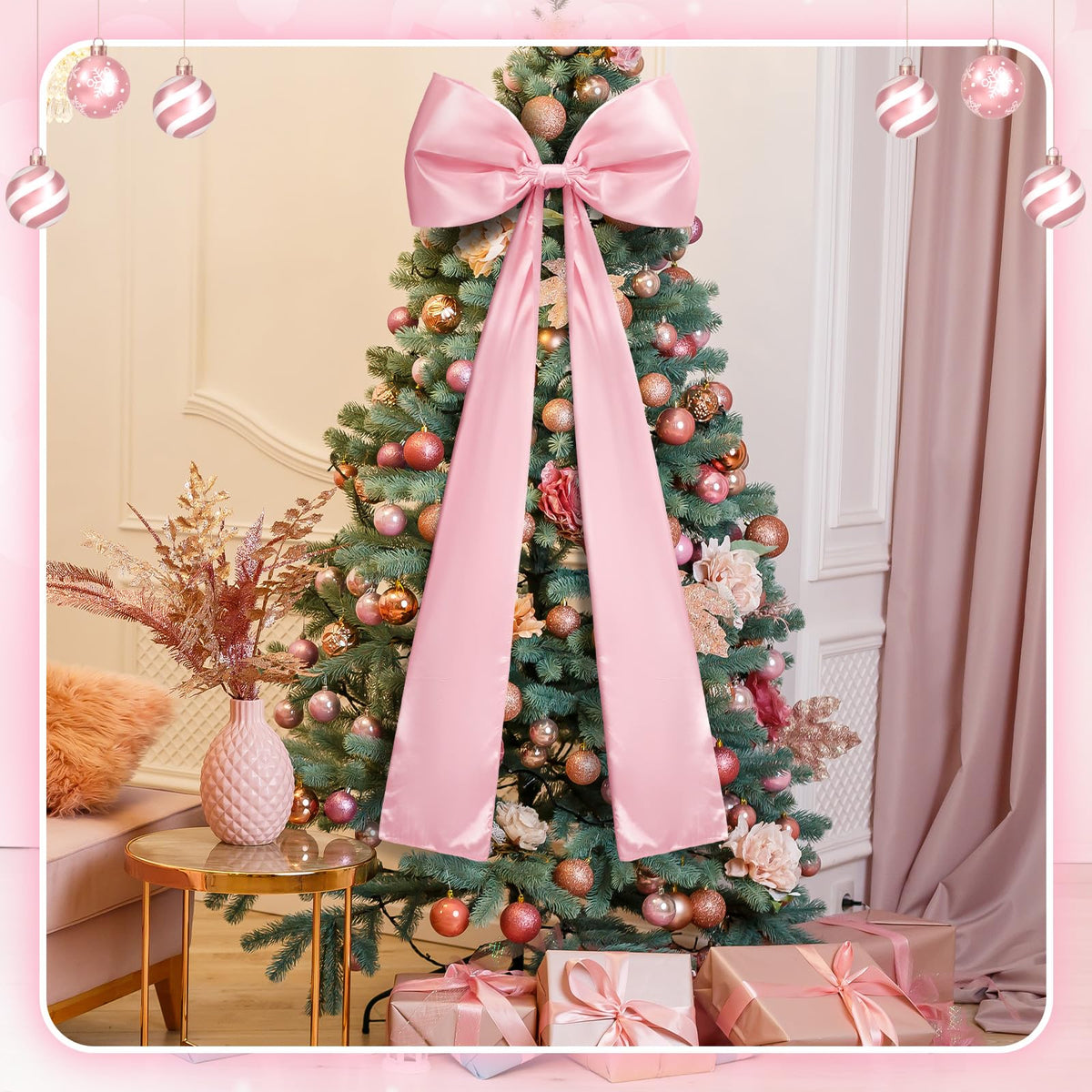 Features: Featuring streamers that drop down about 3.9 ft/ 1.2 m, this pink ribbon Christmas tree topper is delicate and dreamy. While the ribbon cascades down your tree or decor item, it adds an extra layer of visual depth, creating an enchanting focal point. While adding a festive atmosphere, our pink bow tree toppers with hanging down ribbons are effortless to install. Directly attach to the tree or other places. Furthermore, the flat folded design ensures the bow is easy to store when the holiday season wraps up, ready to be applied year after year. Specifications: Material: satin Color: pink Size: Width of ribbon: about 10 inches/ 25 cm Width of bow: about 19.7 inches/ 50 cm Drop length of ribbon: about 3.9 ft/ 1.2 m Package includes: 1 x Christmas tree topper bow with long streamers Notes: Manual measurement, please allow slight errors on size. The color may exist a slight difference due to different screen displays