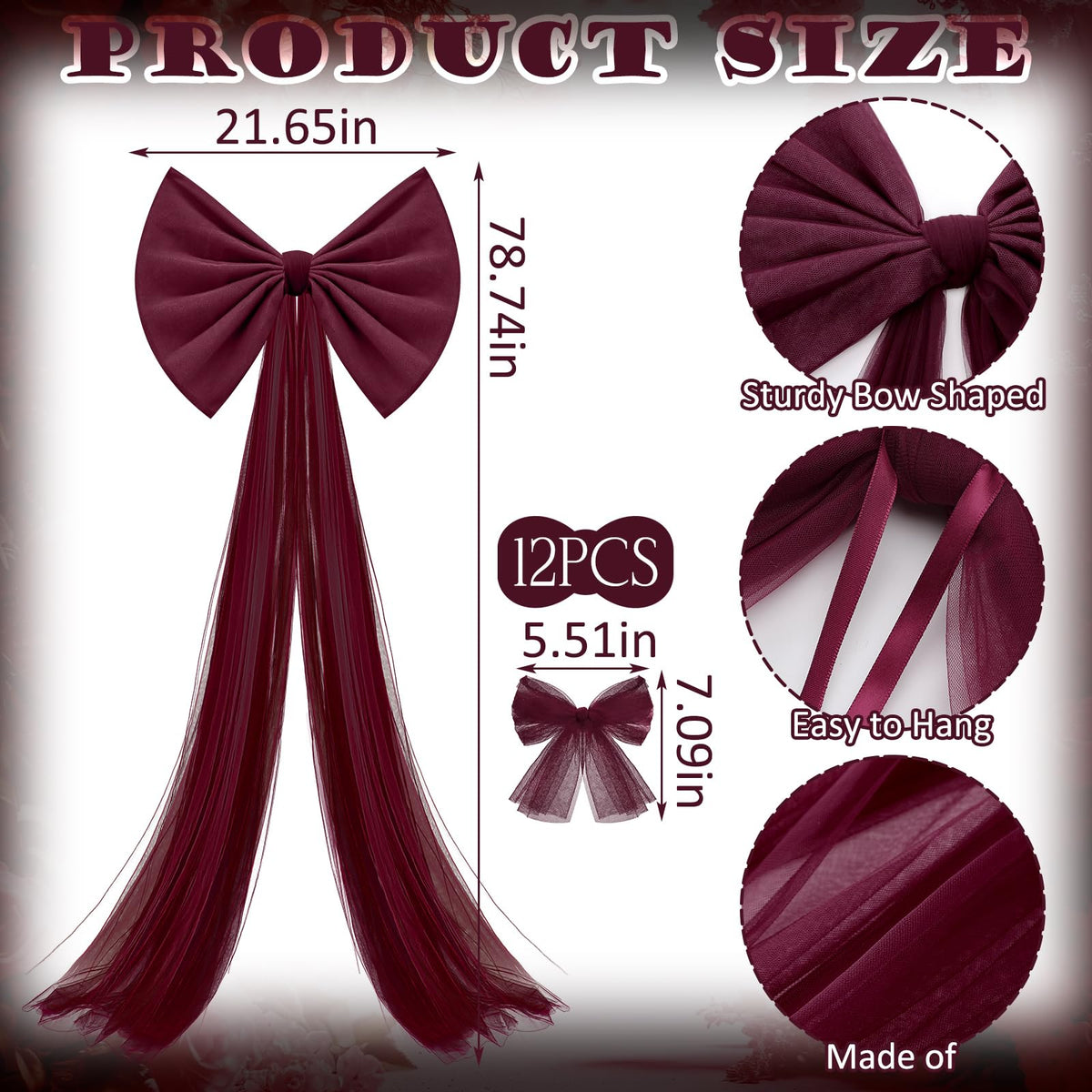 Features: Reusable and Ready for Action These Christmas bows can be applied repeatedly, offering a means of decorating that doesn't compromise on style or convenience. The bows can be applied directly, ensuring that your Christmas preparations remain hassle-free year after year. Specifications: Material: Mesh Color: Burgundy red Size: A large bow: 21.65*78.74In, small bow: 5.51*7.09in Package includes: 1 oversized mesh bow with 12 smaller mesh bows in the same color Notes: Manual measurement, please allow slight errors on size. The color may exist a slight difference due to different screen displays.