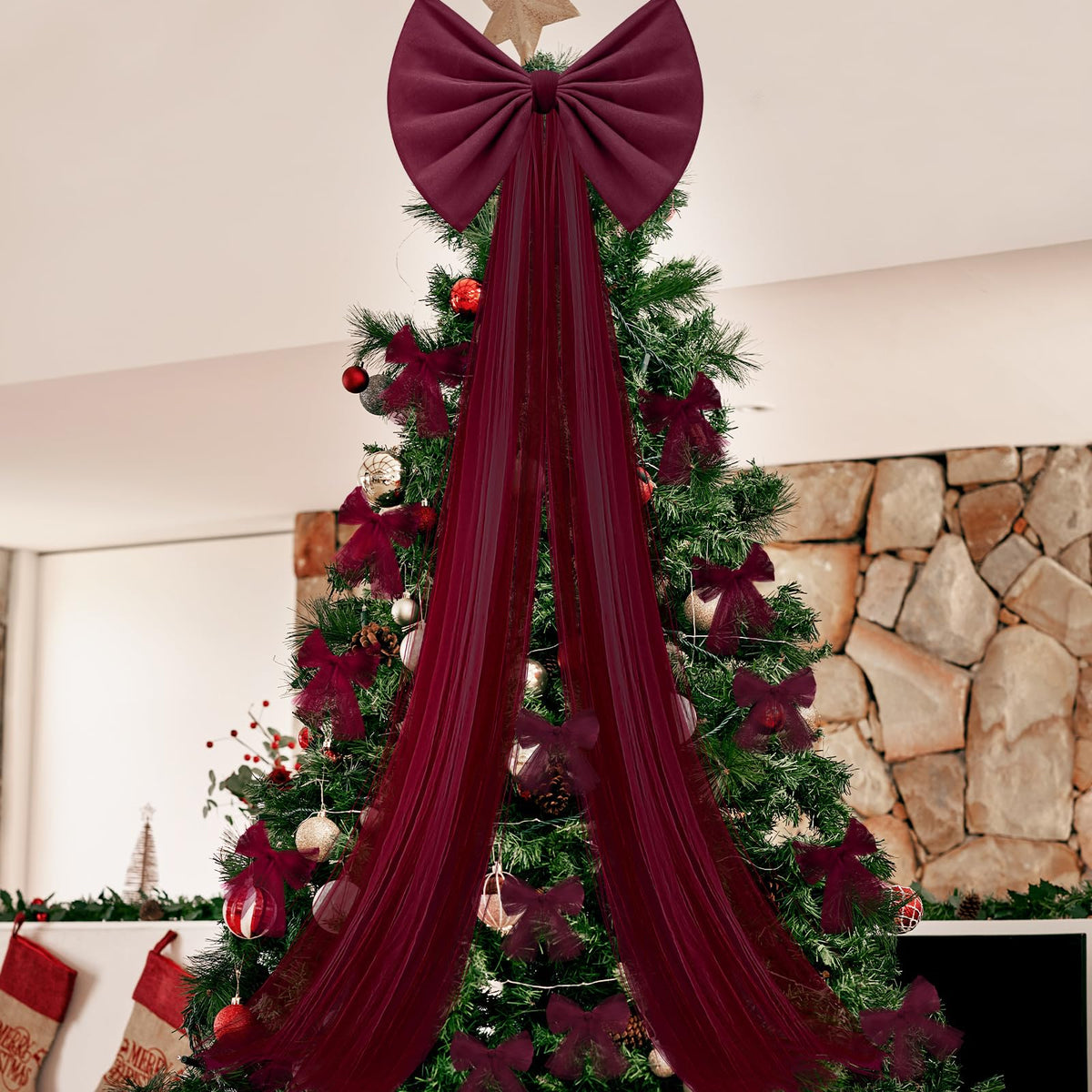 Daifunli Extra Large Mesh Christmas Tree Topper Bow 21.65 x 78.74 in with 12 Small Mesh Bow Decor Christmas Tree Topper Wreath B