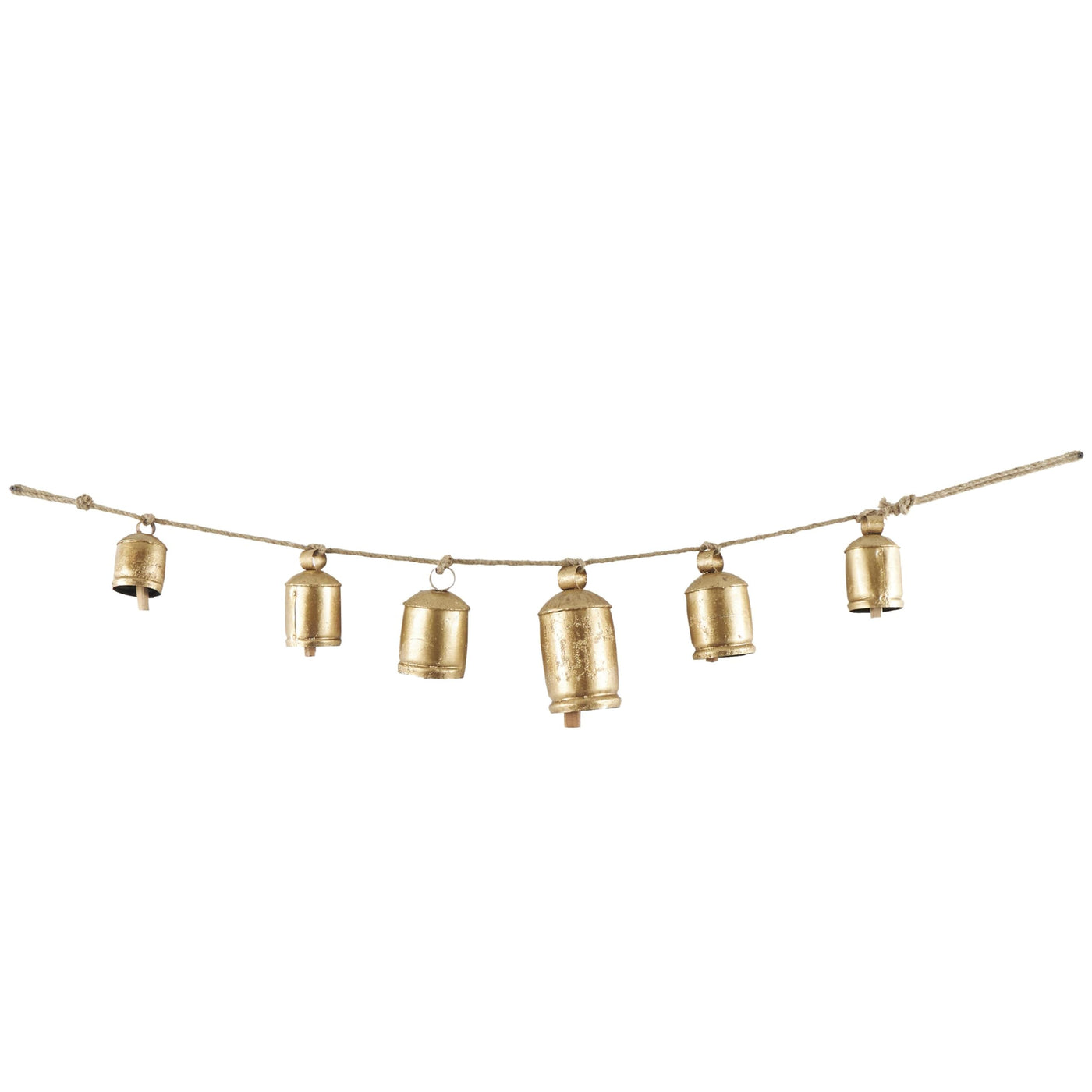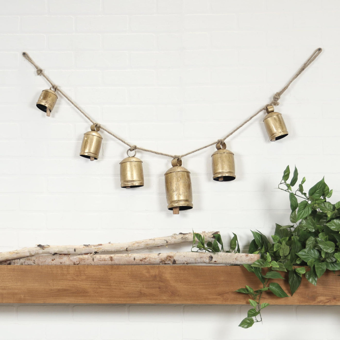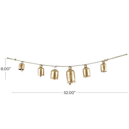 Deco 79 Metal Indoor Outdoor Decorative Cow Bells Tibetan Inspired String Hanging Meditation Bell with 6 Bells on Jute Hanging R