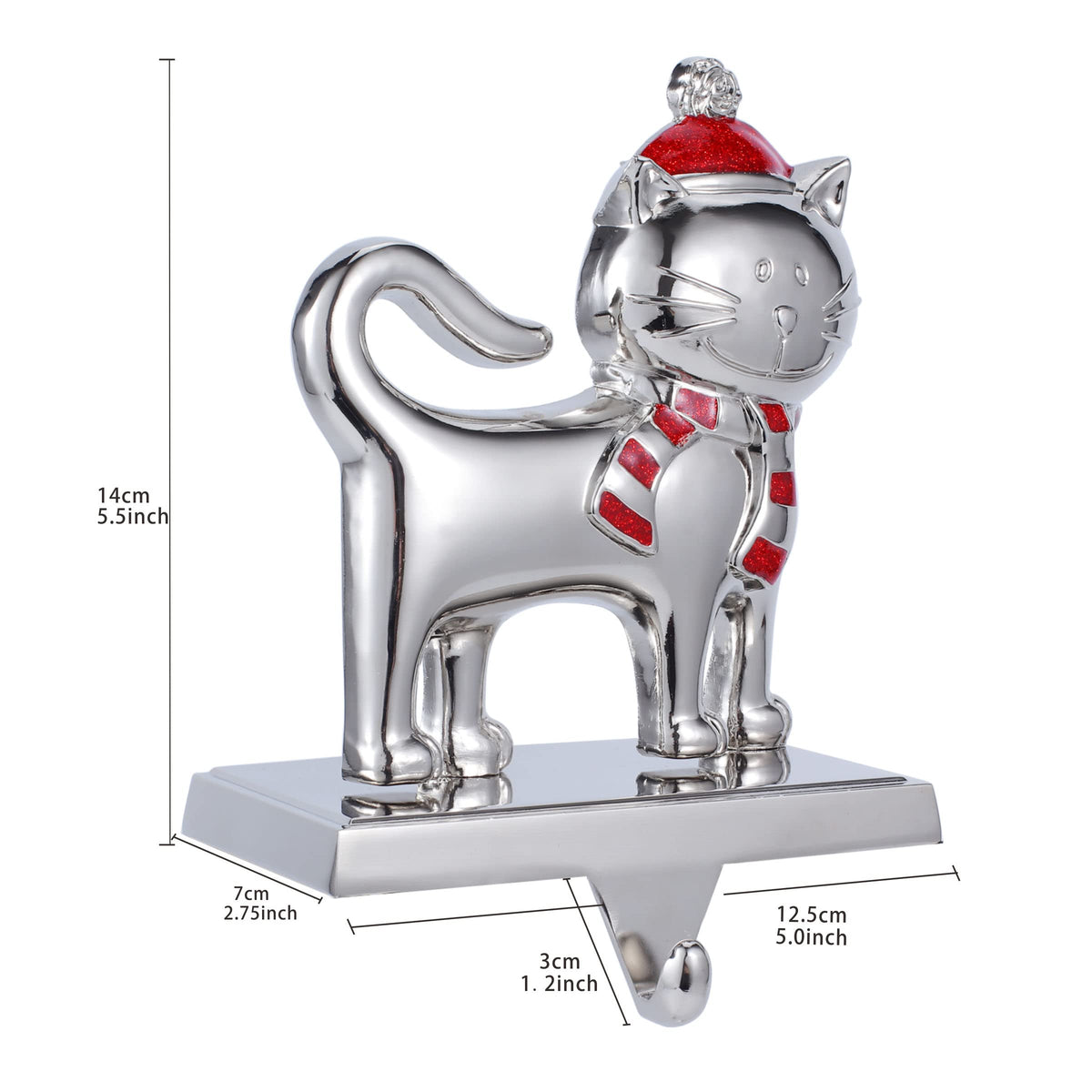 Specifications: Color: Silver Quantity: 1 pieces/Set Size: approx 6.2x 3.2 x5.0 Material: Aluminium Alloy Package includes: 1x Cat stocking holder -The Stocking Holder is made of Aluminium Alloy, sturdy and durable, not easy to rust . -Made of cast Alloy, wear resistance, corrosion resistance Exquisite craft,Simple and cute design holds even the fullest stockings securely. -Perfect for holiday christmas decorations. Dog and Cat Christmas Stocking Hanger design and Alloy stocking holder are classic and won't go out of style.