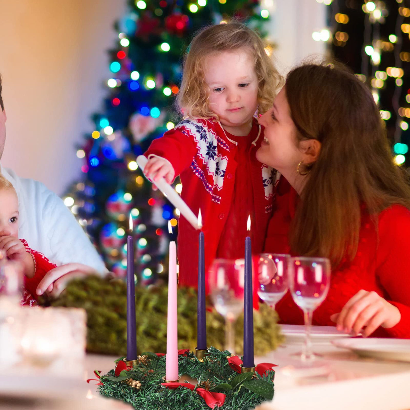 Dingion 12 Inch Christmas Advent Wreath Advent Candle Holder with 4 Taper Candles Remote Control Christmas Centerpiece Decoratio