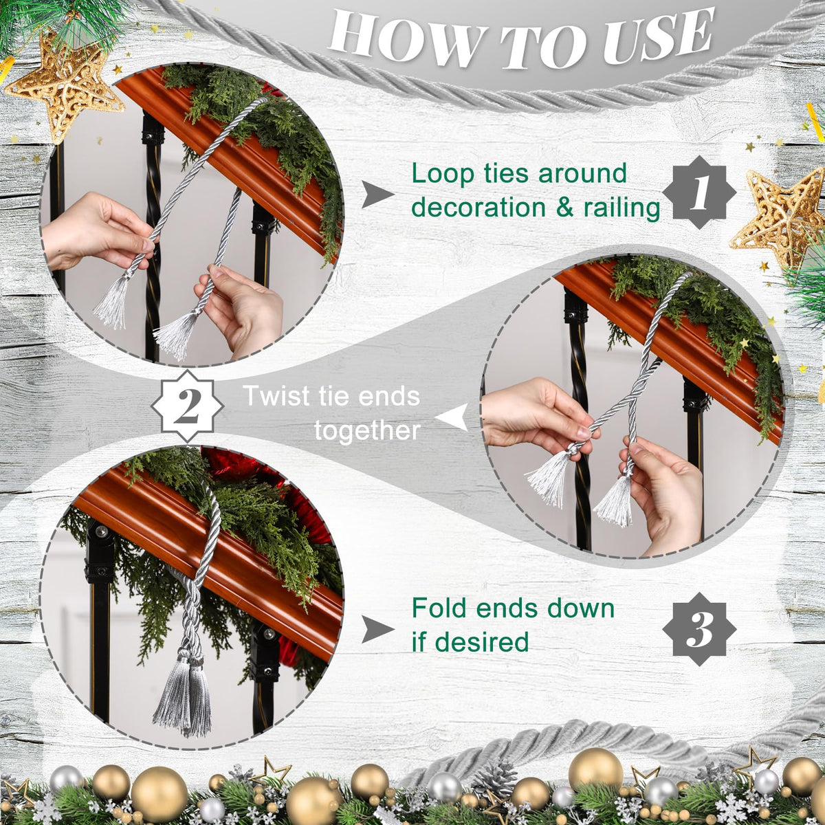 Dingion 20 Pcs Christmas Garland Decorative Banister Ties with Tassel 25.2 Inches Christmas Reusable Twist Ties for Garland Fire