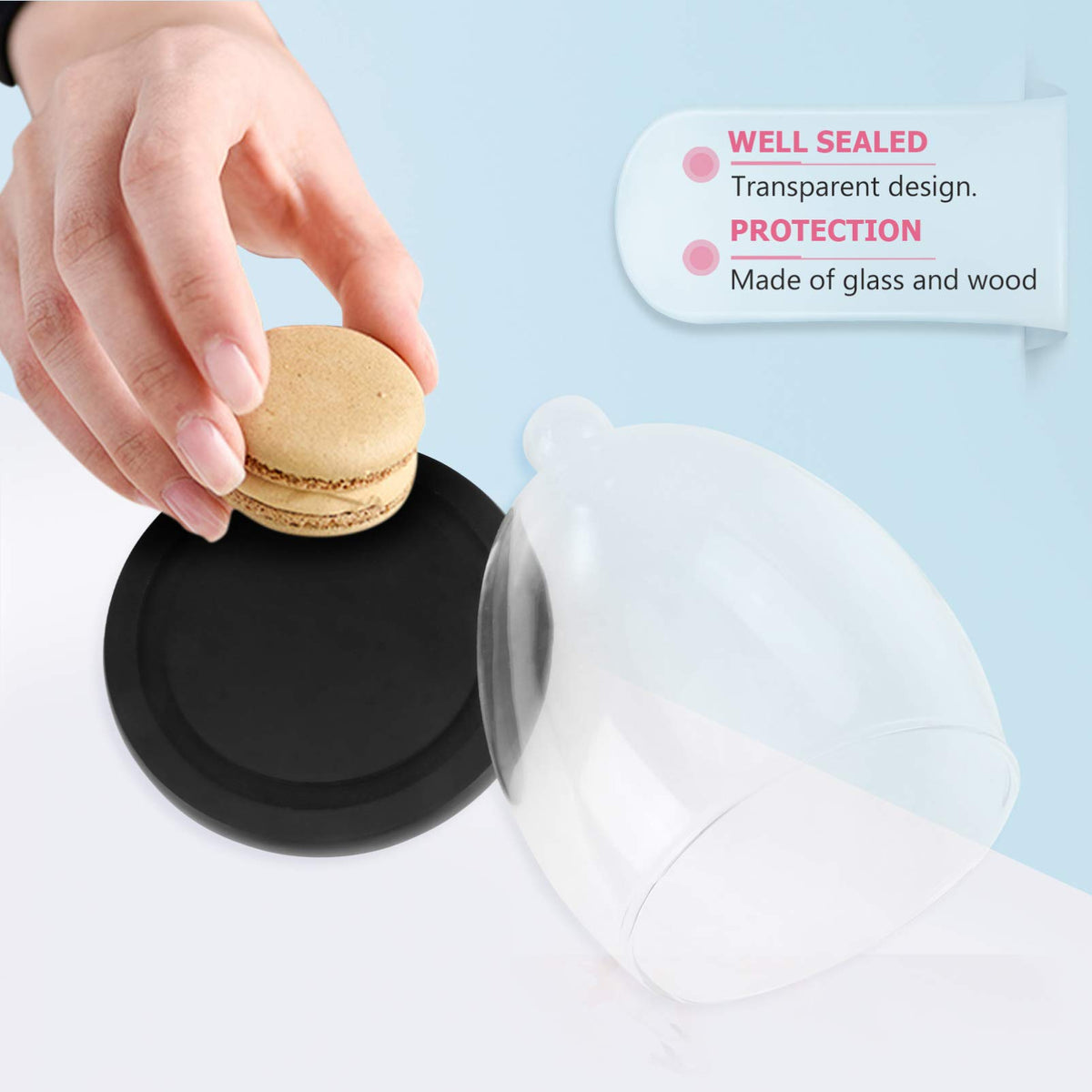 Display Dome Cloche 1 Set of Glass Dome Dessert Cover Display Cover Glass Display Cloche Dome with Black Base Preserved Flower C