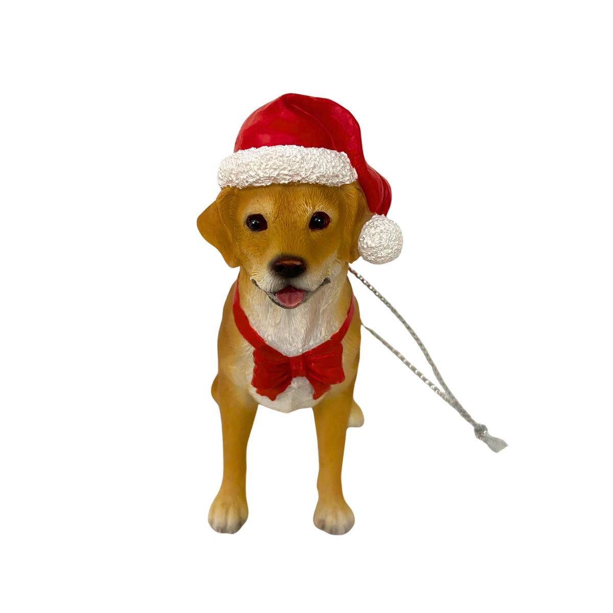 Dog Figurine Christmas Ornaments with Santa Hats (Yellow Lab)