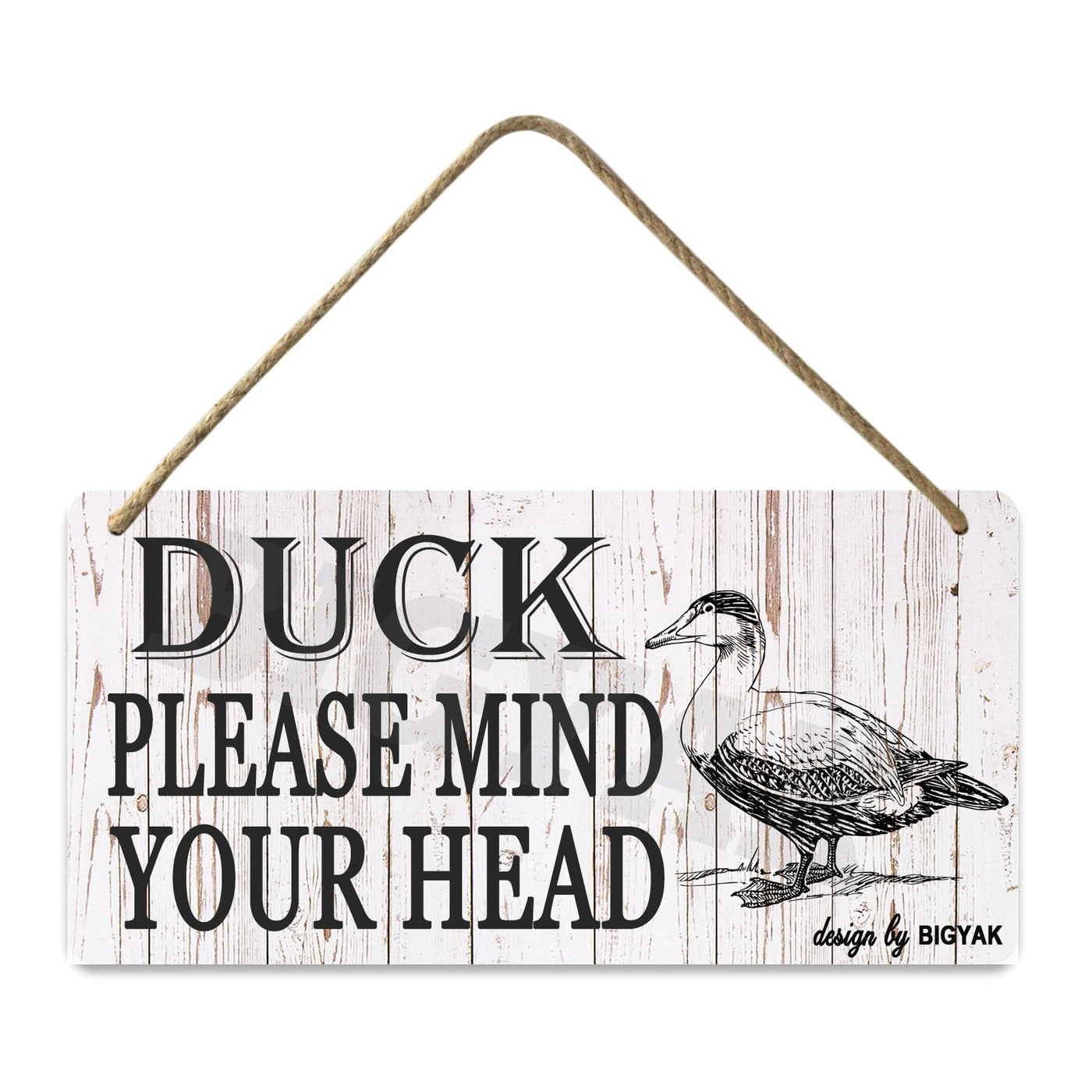 Duck Please Mind Your Head Wooden 5X10 Inch Retro Look Decoration Painting Sign for Home Kitchen Bathroom Farm Garden Garage Ins
