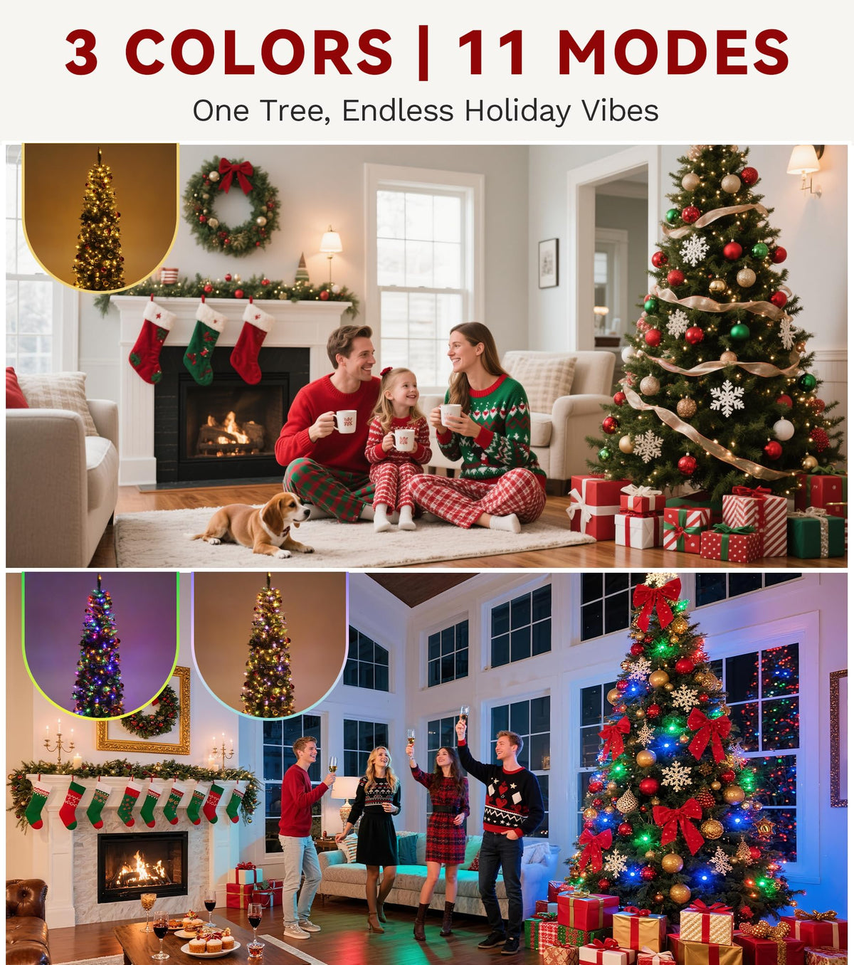 Slim Design: DWVO's Kingswood fir pencil Christmas tree boasts a sleek, slender silhouette, ideal for snug corners and compact spaces; Its innovative, space-efficient design injects a touch of creativity into your holiday ambiance | Pre-lit Brilliance: Our pre-lit Christmas tree dazzles with 250 pre-strung lights in 11 modes, easily switchable with a button press; With simple setup and ample decorating space, illuminate your holiday moments effortlessly | Sturdy Build: Supported by an X-shaped iron stand and a reinforced base, our tree ensures sturdiness and durability; Its solid branches can hold an array of decorations and maintain a resilient structure | Effortless Setup: The Fraser fir pencil artificial Christmas tree features pre-attached, collapsible branches for quick assembly; Easily adjust the branches to fill any gaps, letting you focus on embracing the festive spirit | Lush Appearance: Adorned with 618 branch tips, our tree creates a lush and full silhouette; Appropriate for weddings, homes, Christmas, and commercial spaces; Personalize with wreaths, stockings, or other decor items to craft your unique style