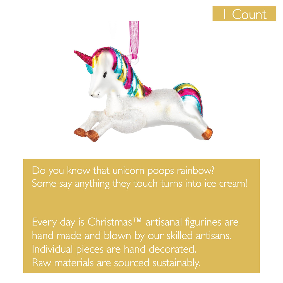 Every Day is Christmas Glass Blown Ornaments Cute Hand Made Figurines Tree Decoration, Unicorn
