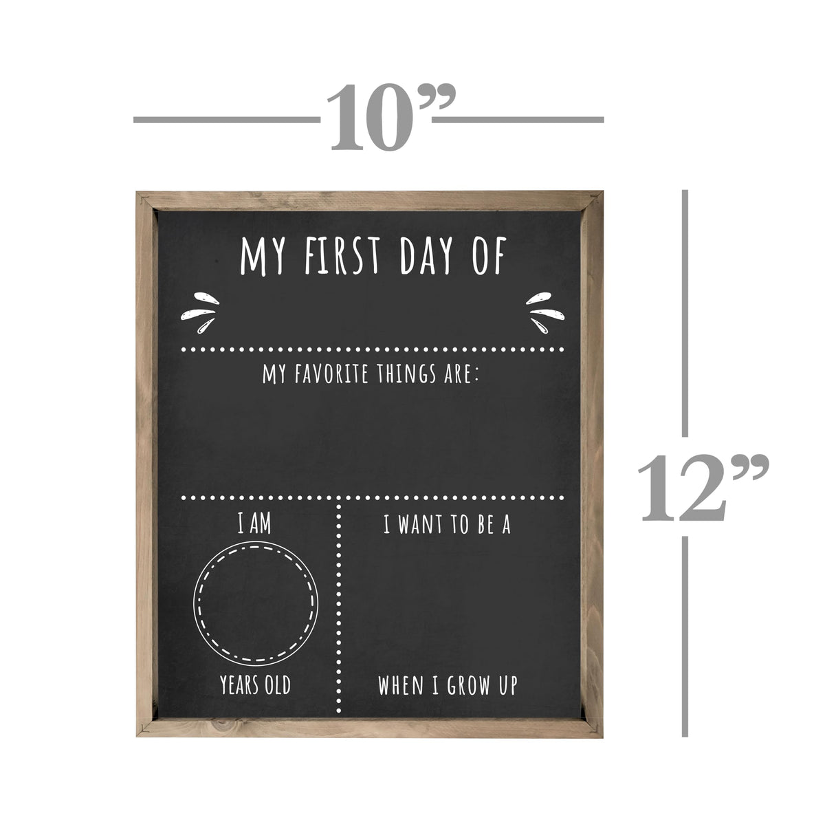 Celebrate the first day of school each year with this fun sign! Simply use regular chalk or a chalk marker to add the details for each year. To erase, just use a lightly damp towel and gently rub away what is written.