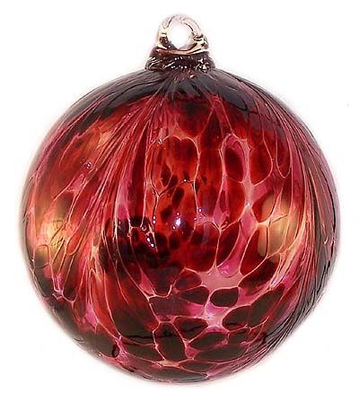 In this kugel design, the glass blower has applied the color granules, and after melting the color he pulls the color from the bottom resulting in a unique design on the surface of the ball similar to a feather pattern. Size is 6 diameter. Cranberry is light red, dark red colors. About Art Glass Decorations: Iron Elegance offers authentic, hand crafted art glass decorations from recycled glass. When making art glass, it is impossible to recreate any piece identically. Our art glass may reveal slight imperfections, possibly air bubbles, tool marks, glass and or color pattern irregularities. These are attributes of skilled handcrafted art glass, rather than a mass produced, machined item and do not imply a defect. Images/Product Descriptions- Iron Elegance does its best to provide accurate product details on Amazon. Displayed digital images have the most accurate representation possible. There may be slight differences in color from the image on screen and color of the product you receive due to the users screen settings, photo lighting, surfaces photographed on, time of day the photo was taken, and filters applied. Amazon requires items to be imaged on a bright white background. Glass color can look different from natural light to artificial light. When a sphere is presented as a flat image, the camera sees color from both sides of the sphere. Consumer Safety- Our glass ornaments do not represent a safety risk. However, glassware is fragile. If using it beyond the items ornamental intent, breakages can occur and broken glass is an injury hazard. Caution should be taken opening of the product package, handling, hanging, and accessibility to children limited. Ornaments are not intended to be worn, nor rubbed on skin.