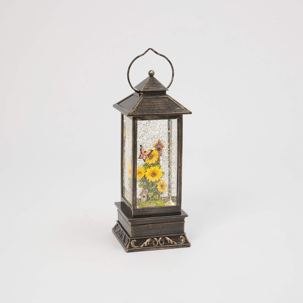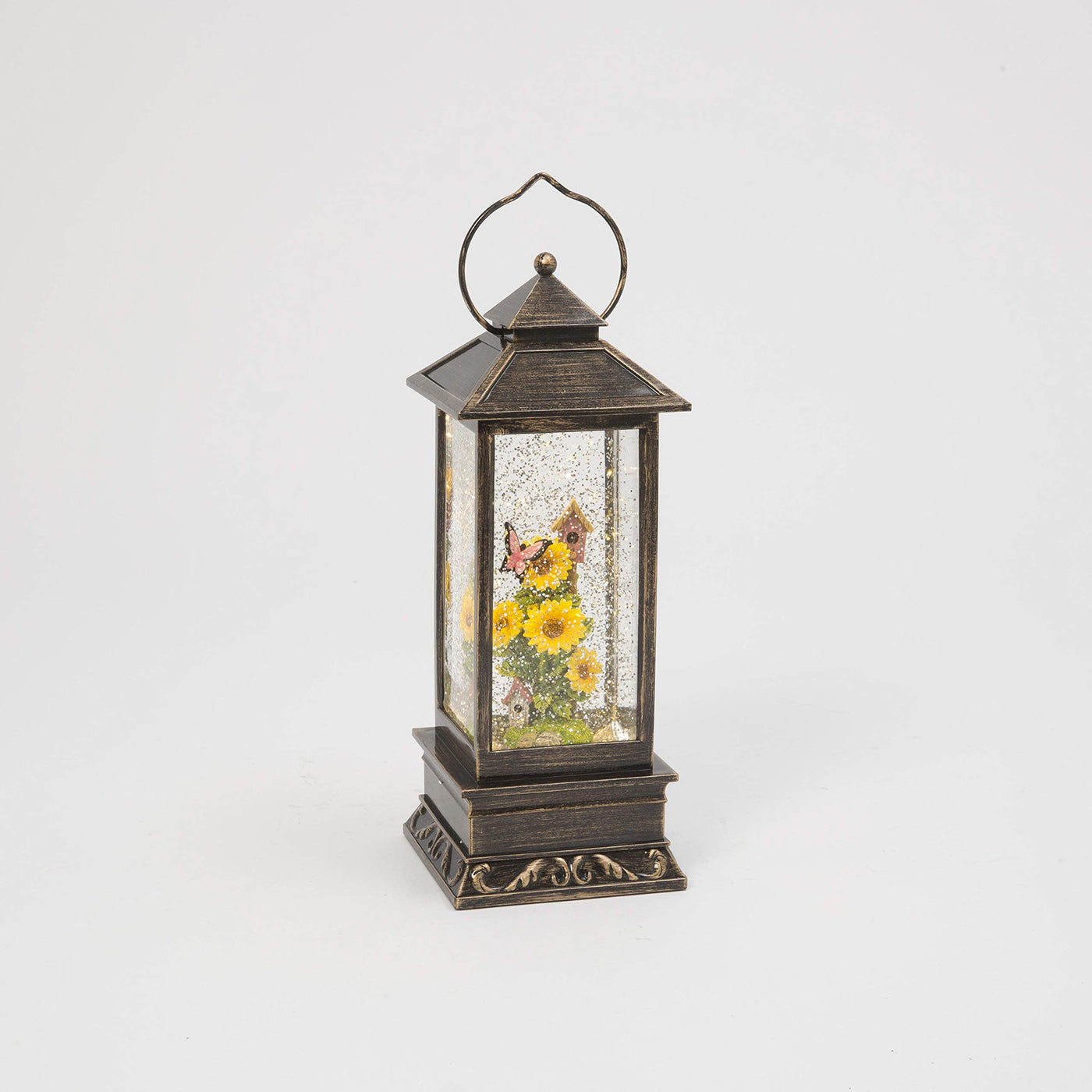 Garden Sunflower and Butterfly Lighted Water Lantern with Timer, Battery Operated, 10.8 Inches High (Pink, Green, Yellow, Bronze). A wonderful gift or a lovely addition to light up your home.