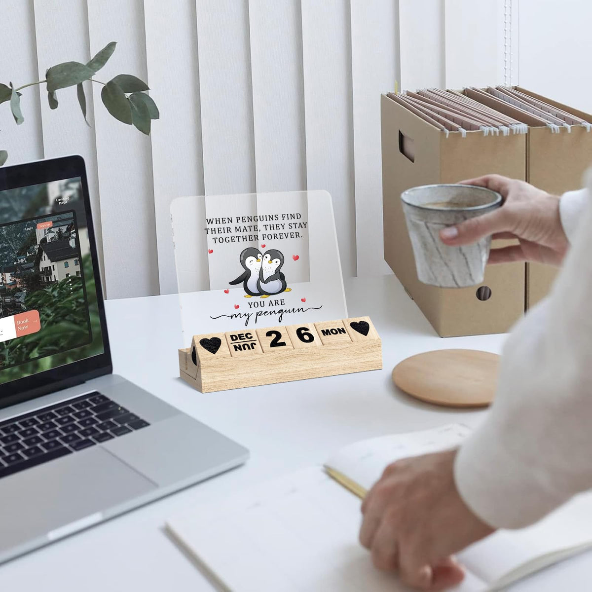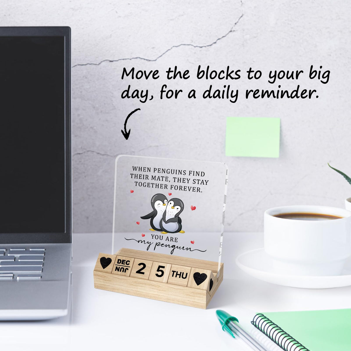 Gifts for Girlfriend Boyfriend, Wedding Anniversary for Husband Wife Block Calendar, Wooden Block for Desk Sign, Valentines Day