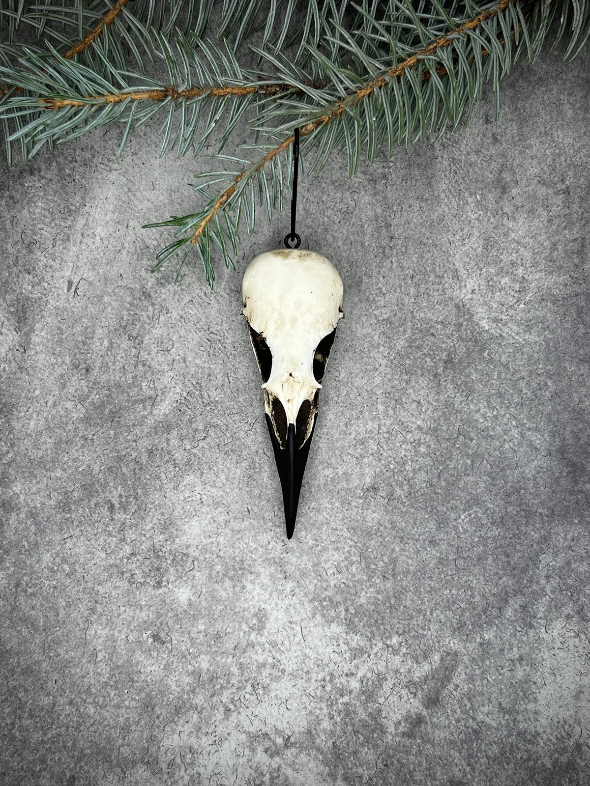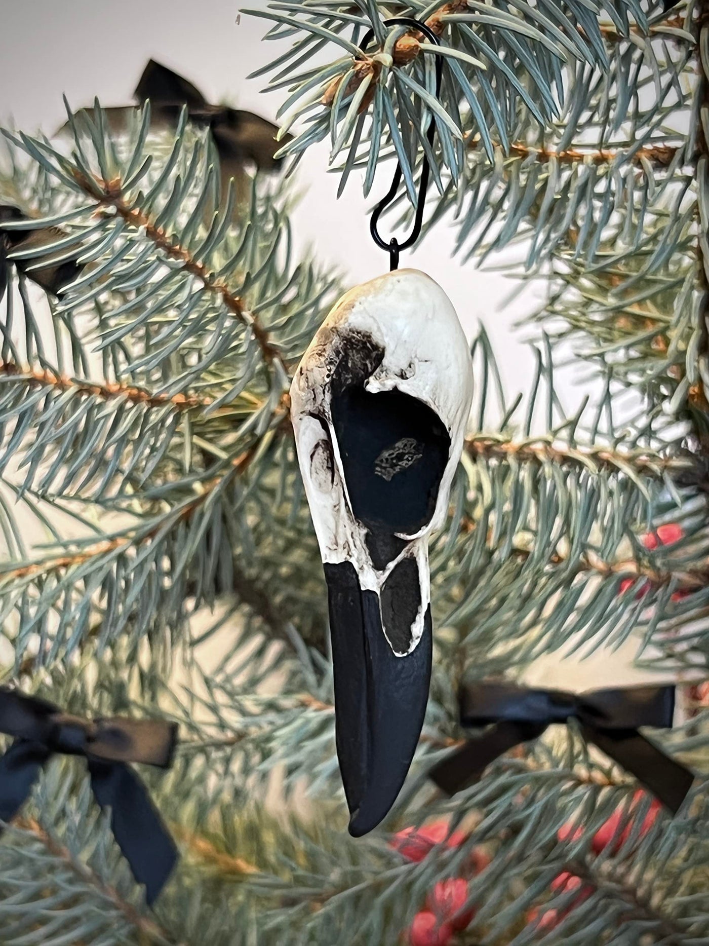 Gothic Raven Skull Christmas Tree Ornament, Gifts for Goths, Yule Pagan