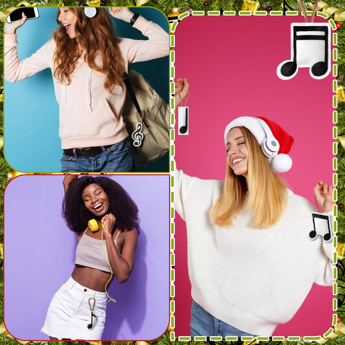 Hahafelt 24 Pcs Musical Note Christmas Ornament Musical 3D Felt Hanging Ornaments Treble Clef Forth Eighth Sixteenth Note Sign D