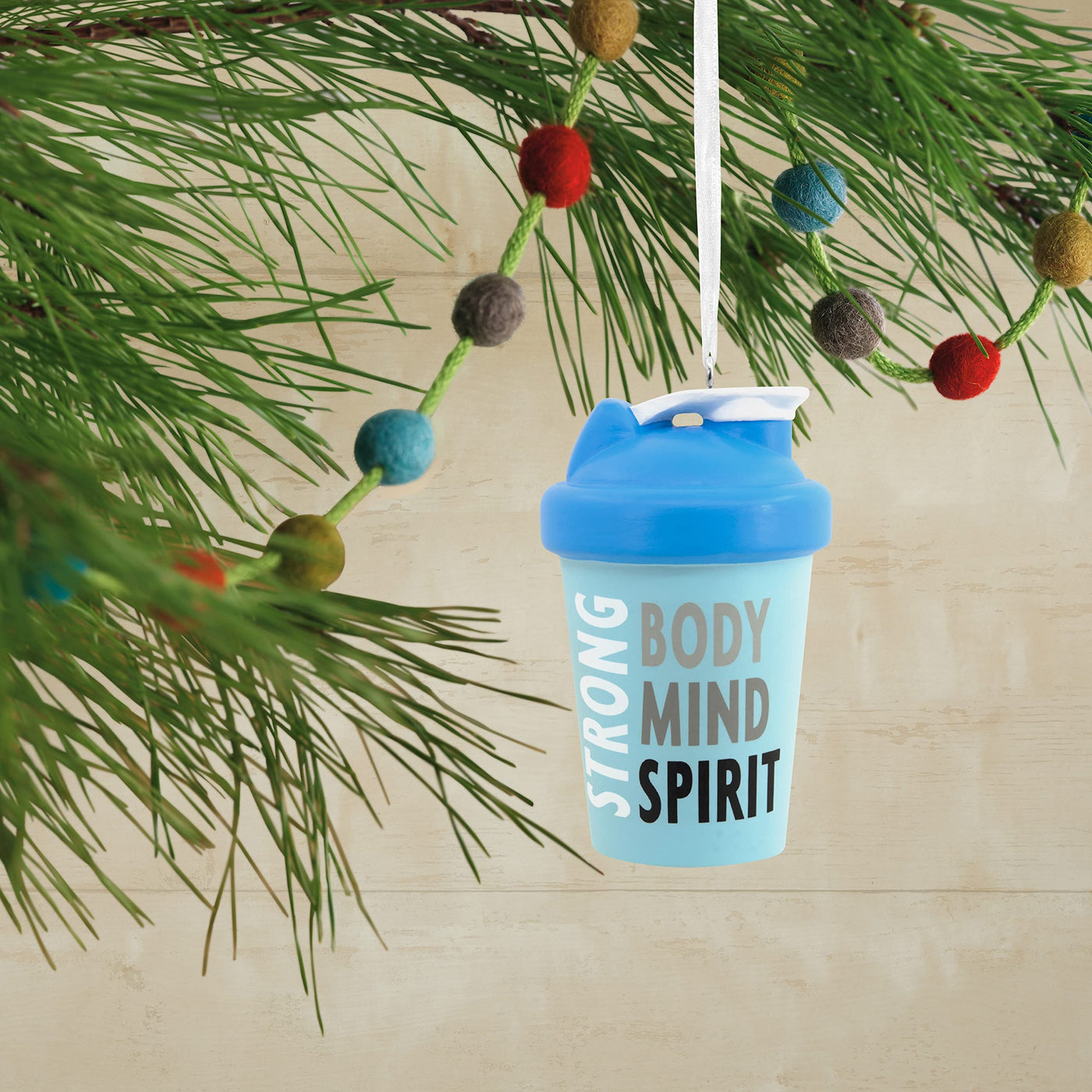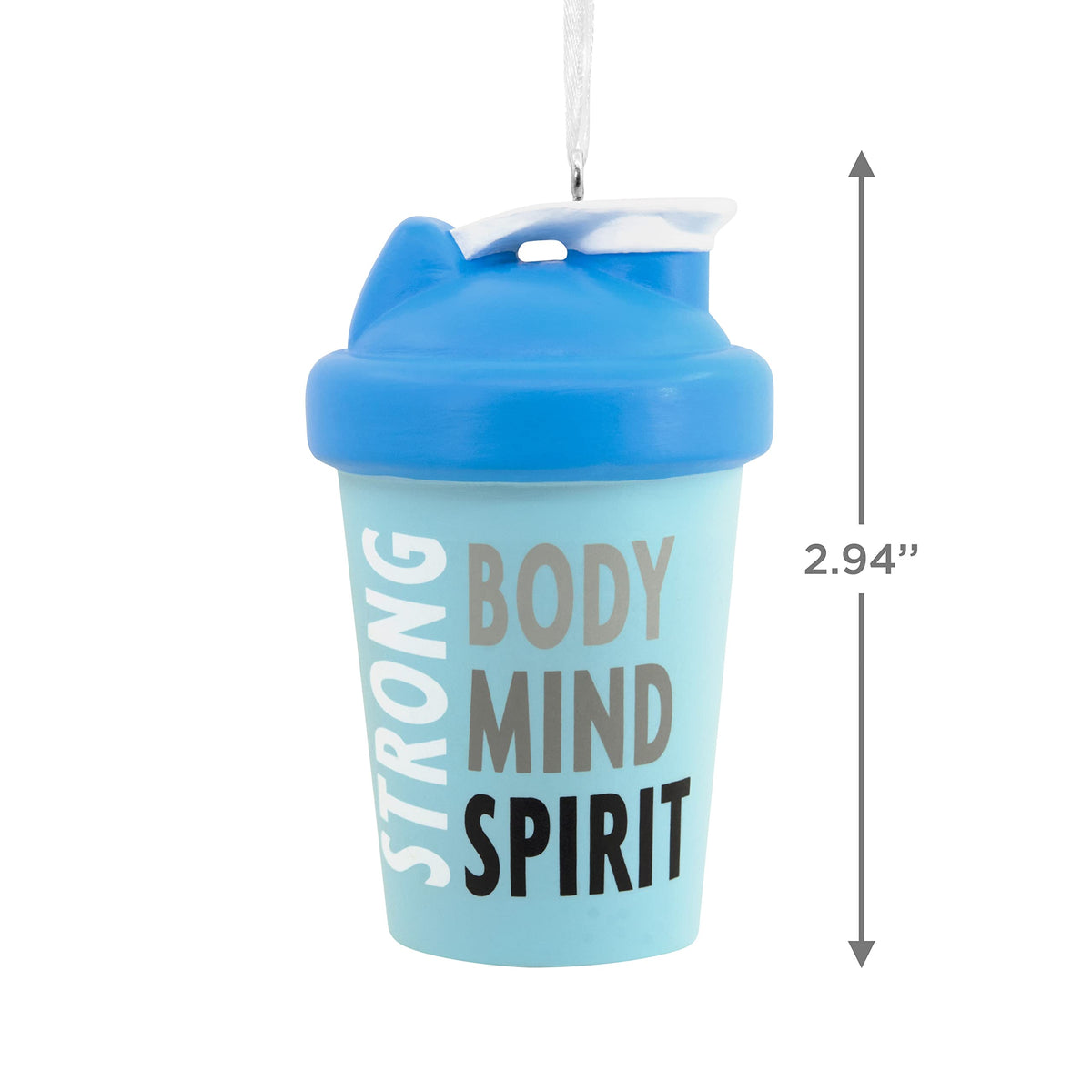 Encourage a friend or family member who is on the path to health with this blue shaker bottle Hallmark Christmas ornament that features a motivational message. Message: Strong Body Mind Spirit. | Great Christmas gift idea for exercise and health enthusiasts, personal trainers and nutritionists. | Additional Details: Resin ornament features hanger attachment. | Includes: One Hallmark Christmas ornament. | Approx. Size in Inches: 1.75 x 3 x 1.75