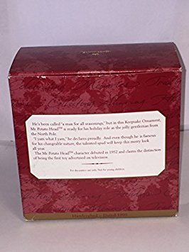 The 1999 North Pole Mr. Potato Head Ornament is a stunning addition to any Christmas Tree! North Pole Mr. Potato Head is dressed up as Santa Claus in the traditional bright red suit, black boots, and red hat. The Mr. Potato Head character debuted in 1952 and has the distinction of being the first toy advertised on television. Even now he is famous for his changeable nature, this talented spud stay dressed as Santa all year long. Hallmark first started crafting their ornaments in 1973. Over the past 50 years theyve become a celebrated tradition for everyone from collectors to everyday Christmas tree decorators. Snag the 1999 North Pole Mr. Potato Head ornament today-Its sure to bring joy to your home this Holiday Season!