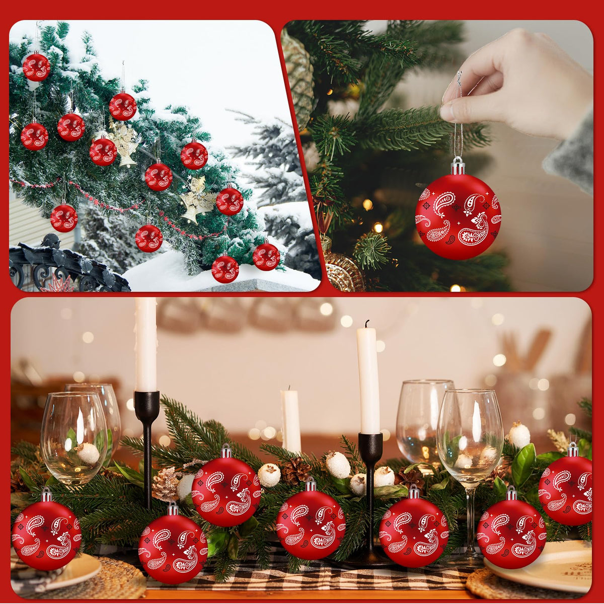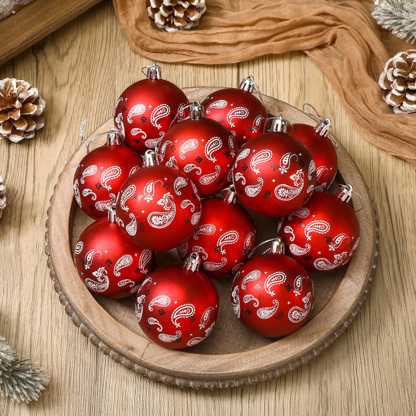 Halloscume 24 Pcs Western Christmas Tree Ornament Paisley Cowboy Bandana Printed Christmas Ball Ornaments Country Western Party
