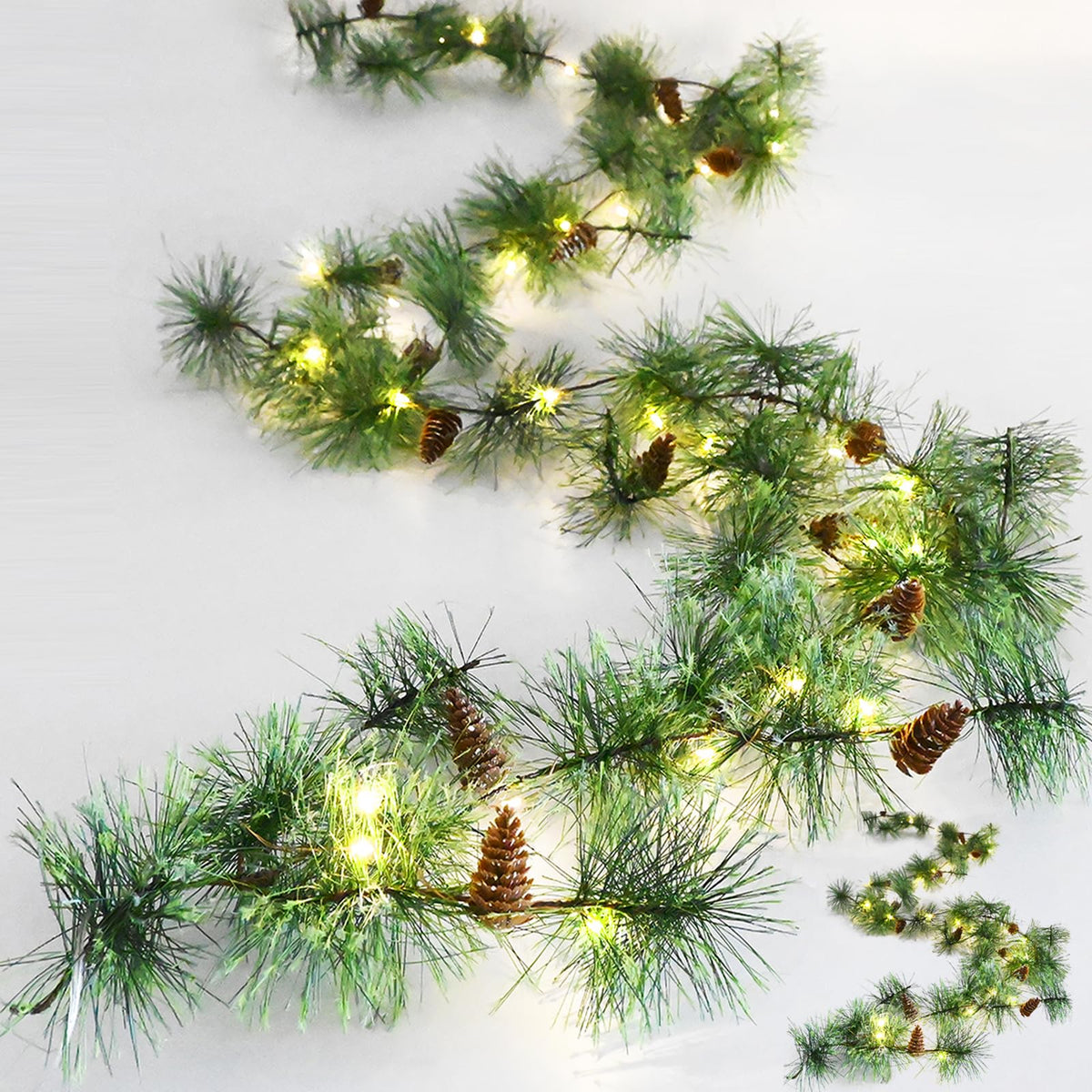 HamiFinee Christmas Garland with LED Fairy Lights 13FT Battery Operated Smokey Pine Garlands with 8 Flash Modes and Timer Pine C
