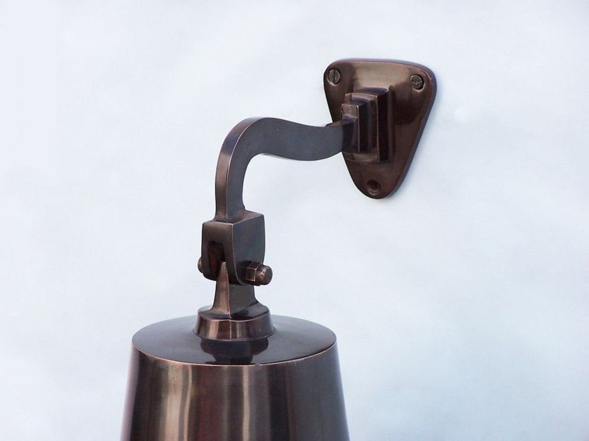 This antiqued copper bell 11 inch imparts a distinctive maritime feeling wherever it resides, whether hung outside as a functional bell or used as a decor item in a nautical themed room. This ships bell sounds as beautiful as it looks, and comes complete with a Braided rope striking lanyard.