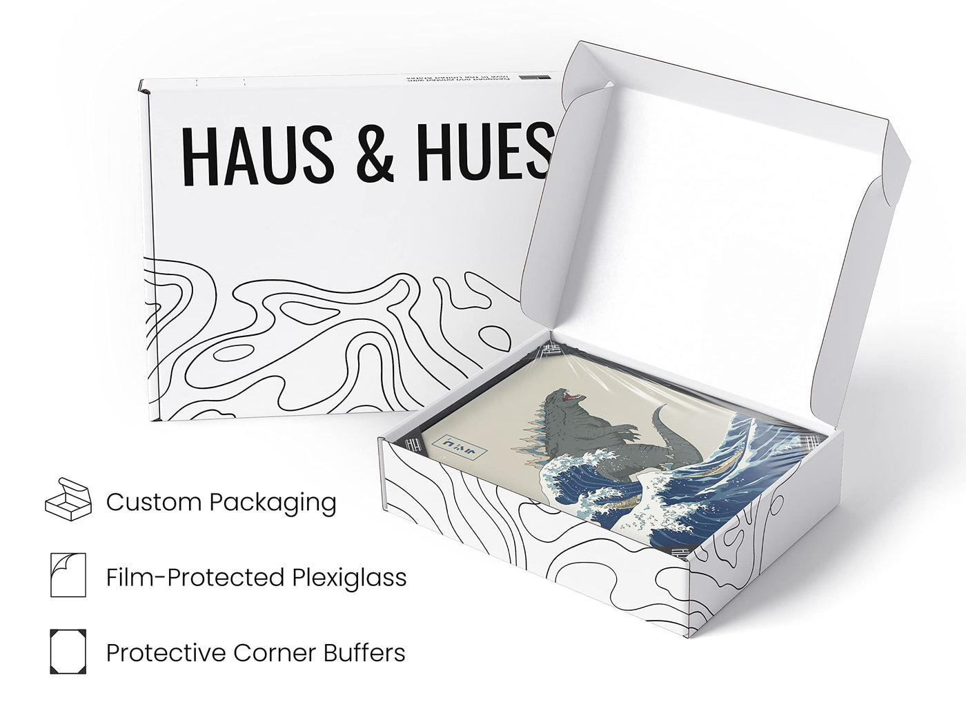 - Q: Is this wall art suitable for all types of decor? A: Yes, the design features a great wave and a king of monsters, making it a versatile piece that can complement various decor styles.