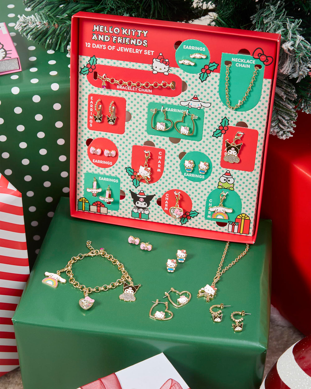 Hello Kitty and Friends Jewelry Advent Gift Set: 12 Piece Earrings Necklace Bracelet & Charms Mix & Match Christmas Set