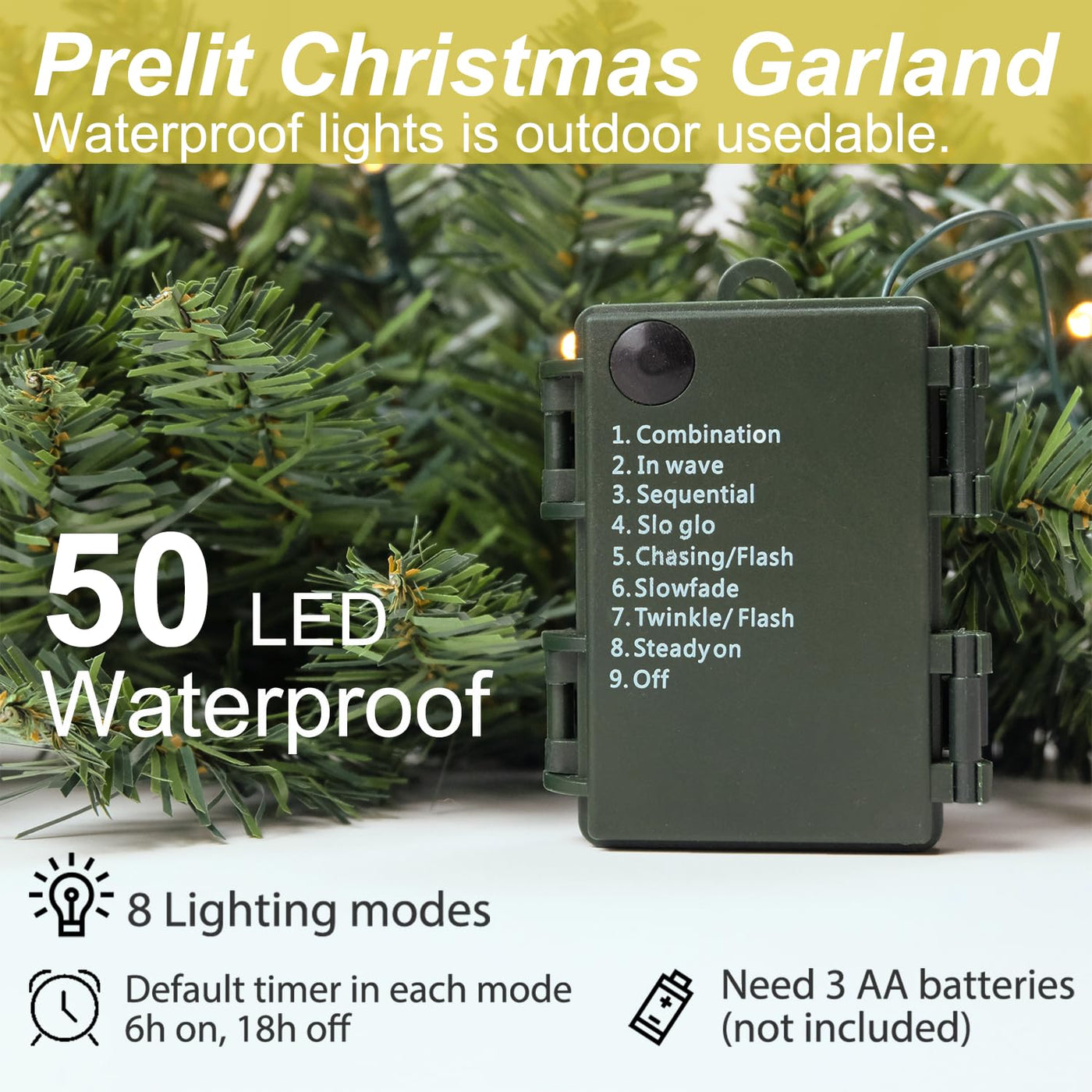 HomeKaren Christmas Garland 18 Ft by 12 Inch Prelit Fraser Fir Xmas Garland with 100 LED Lights, Lush and Classics Green Style f