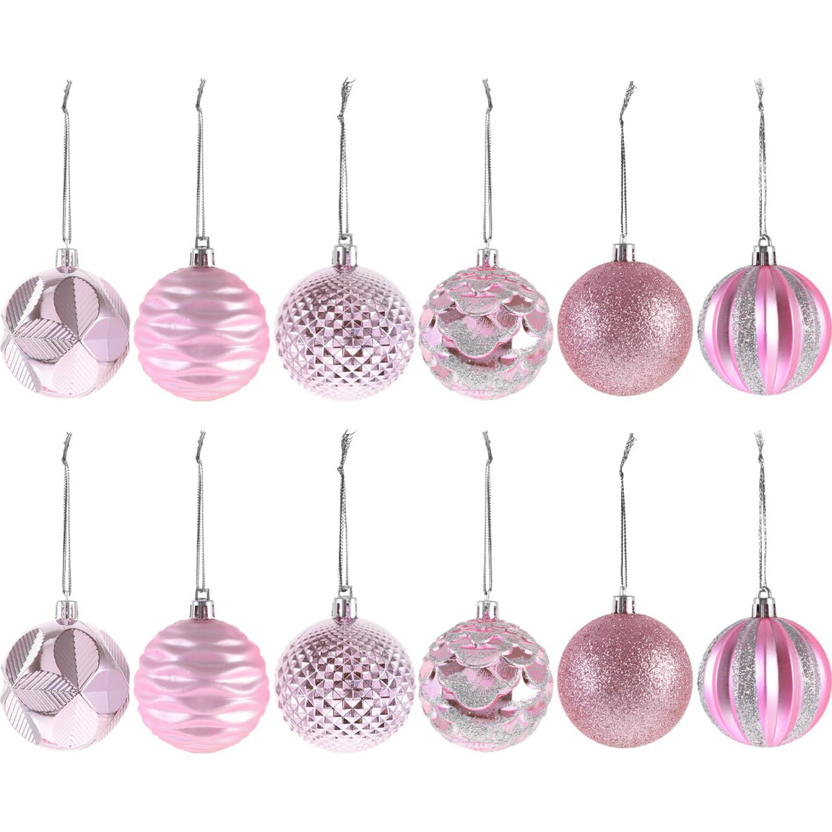 HOMSFOU 12Pcs Pink Christmas Ball Ornaments - 2.36 Inch Shatterproof Xmas Tree Decorations with Hanging Loop for Holiday, Home,